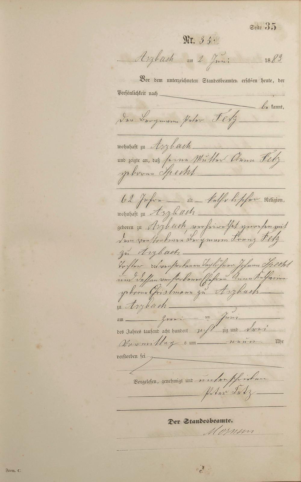 Sterberegister 1883