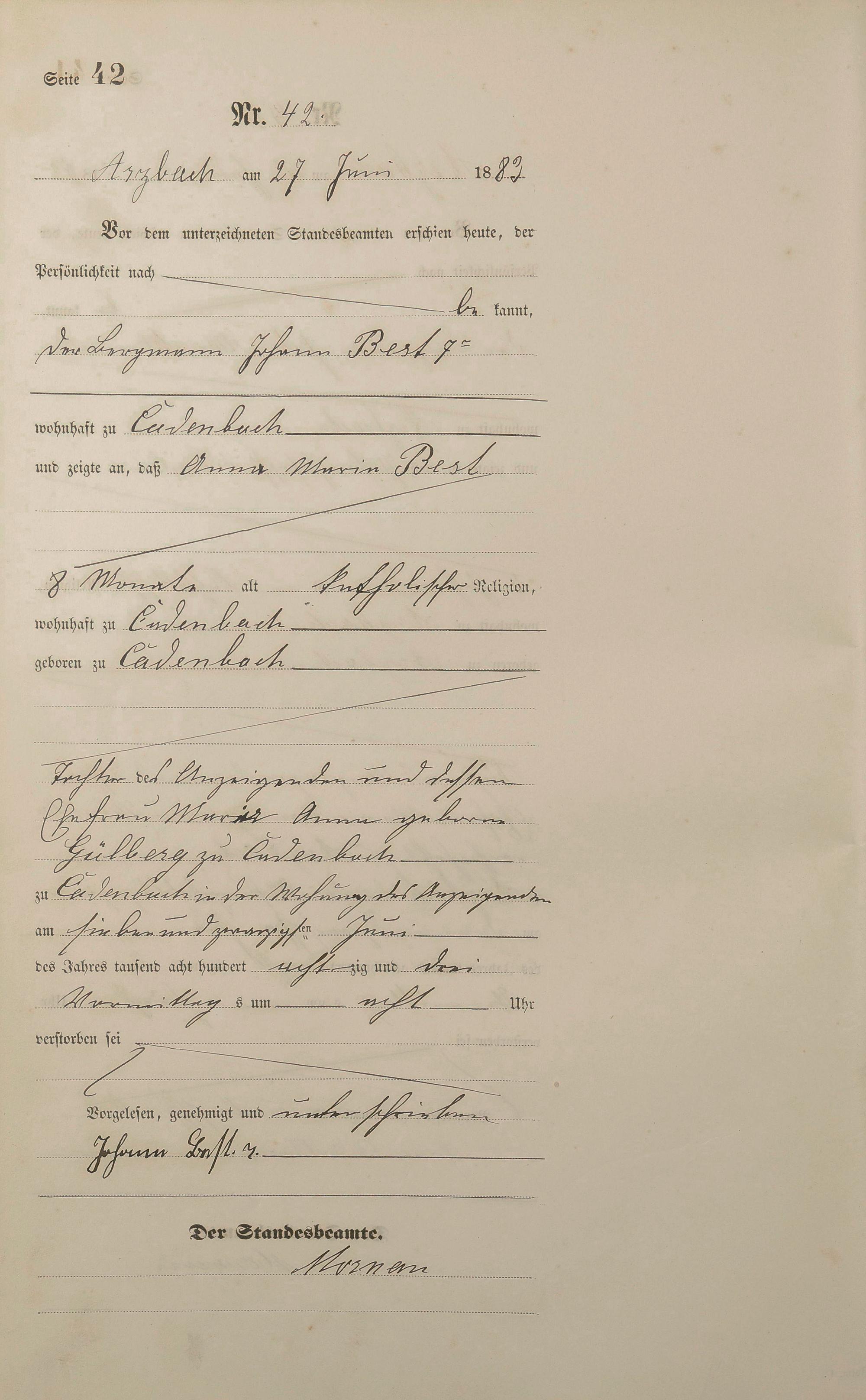 Sterberegister 1883