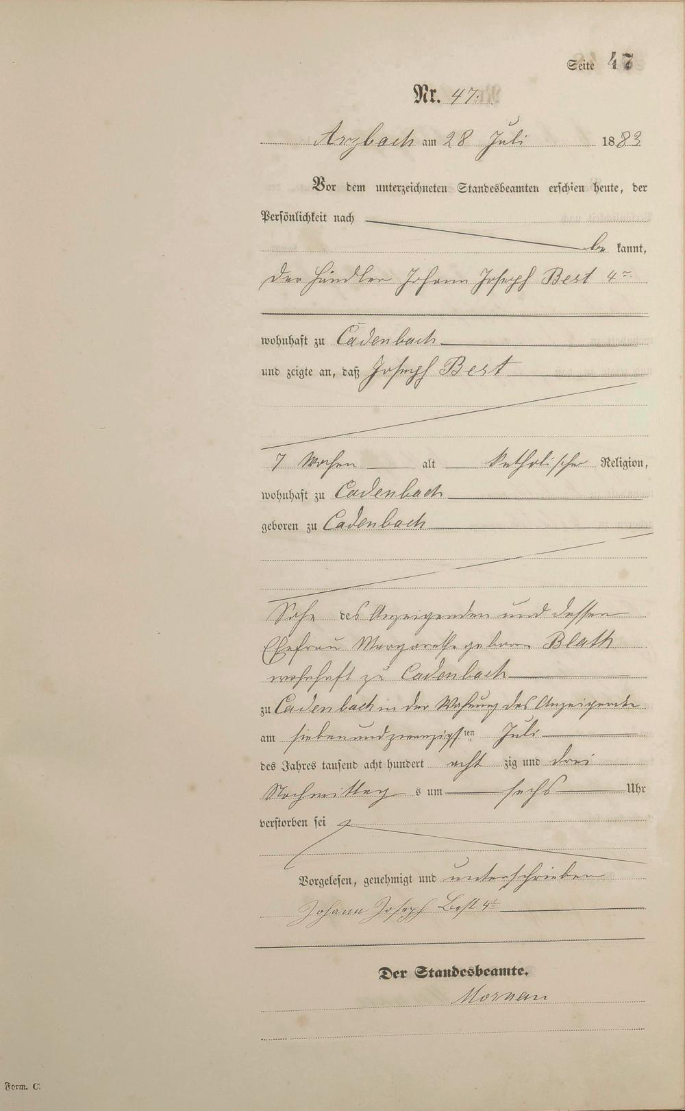 Sterberegister 1883
