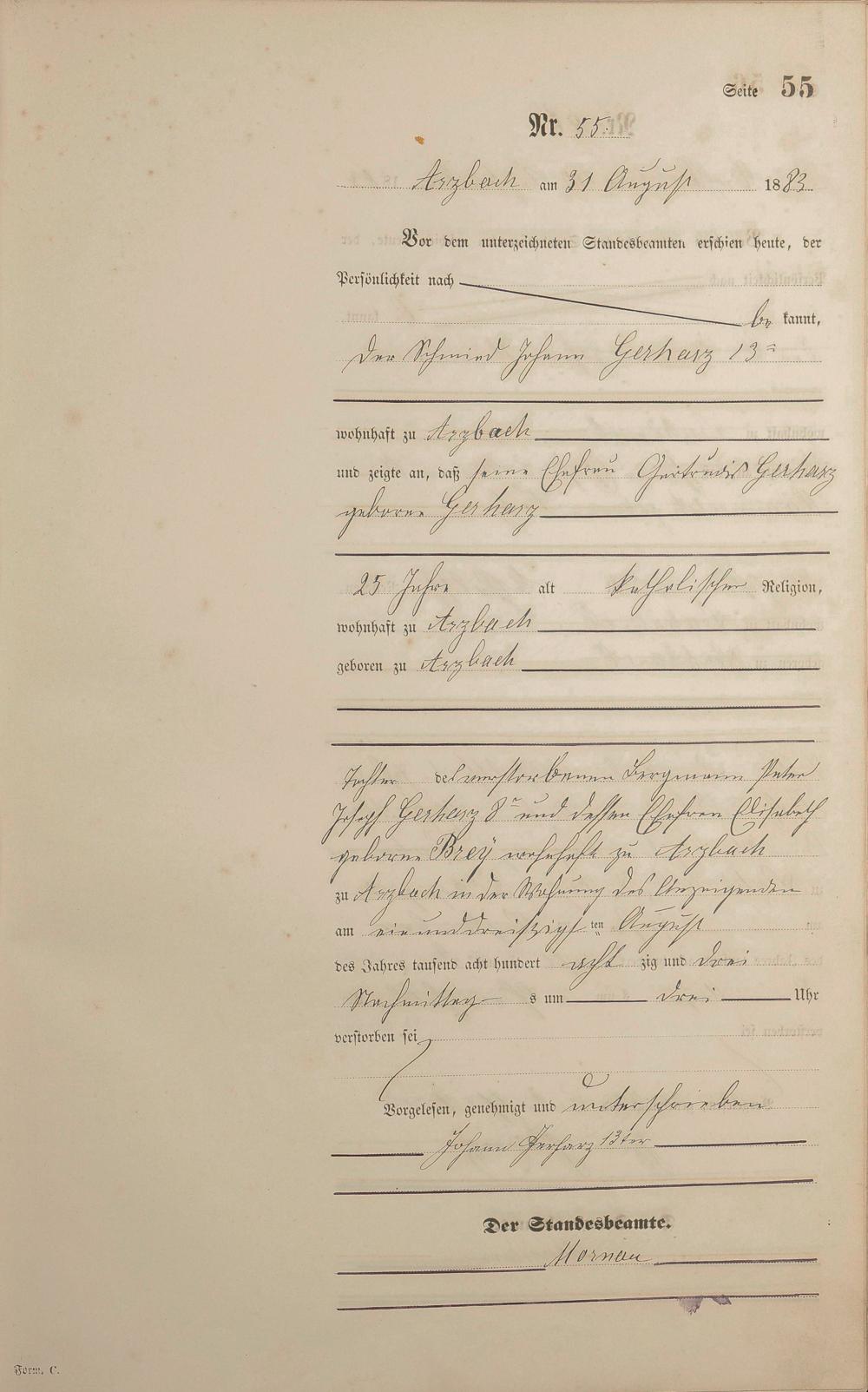 Sterberegister 1883