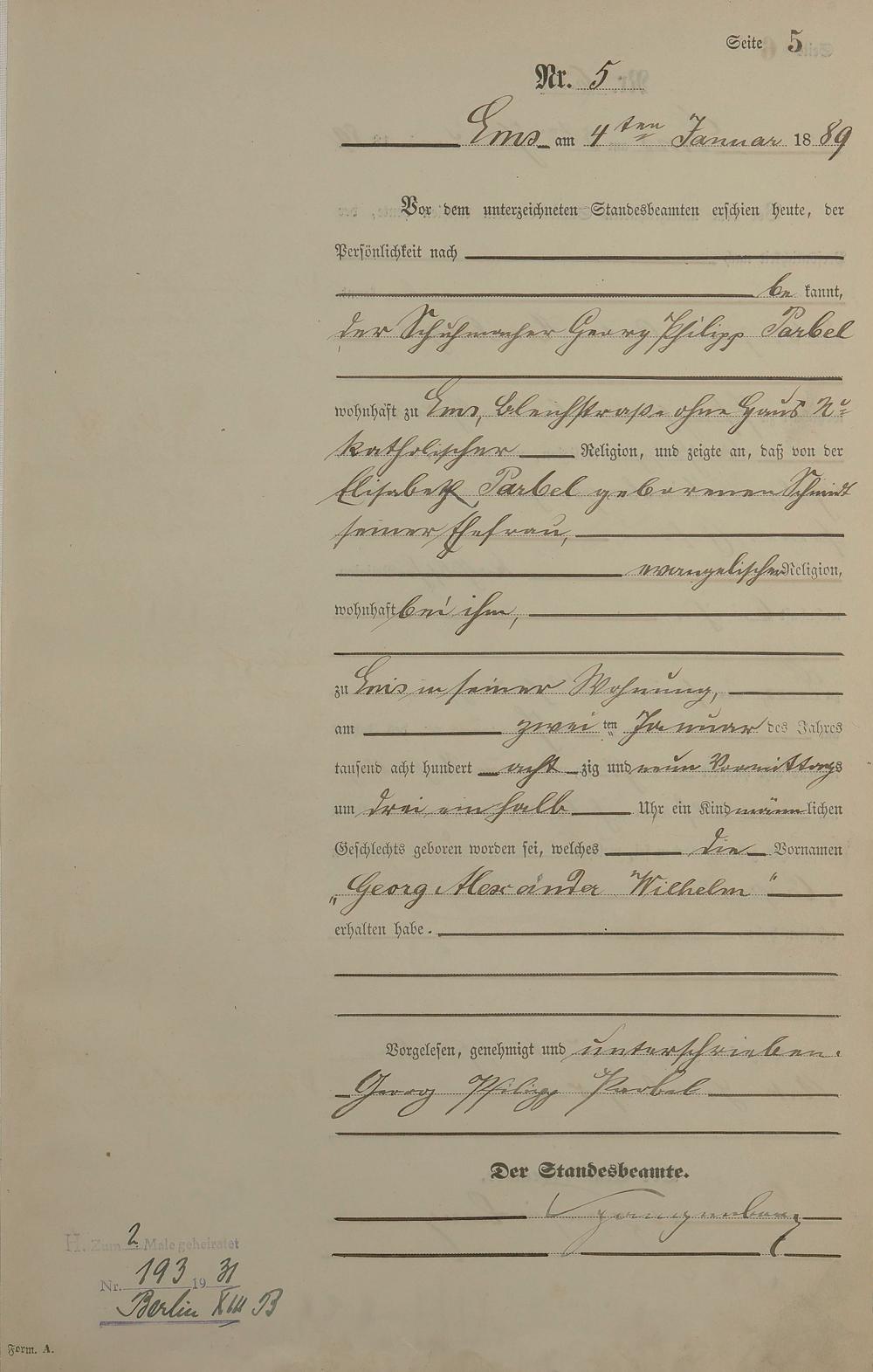 Geburtsregister 1889