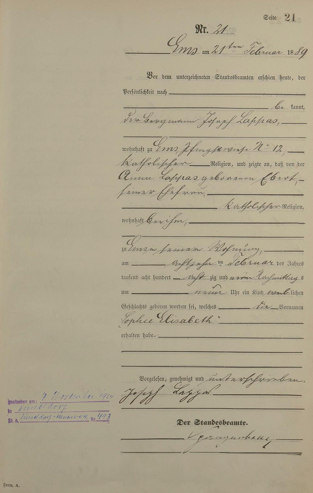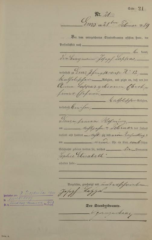 Geburtsregister 1889