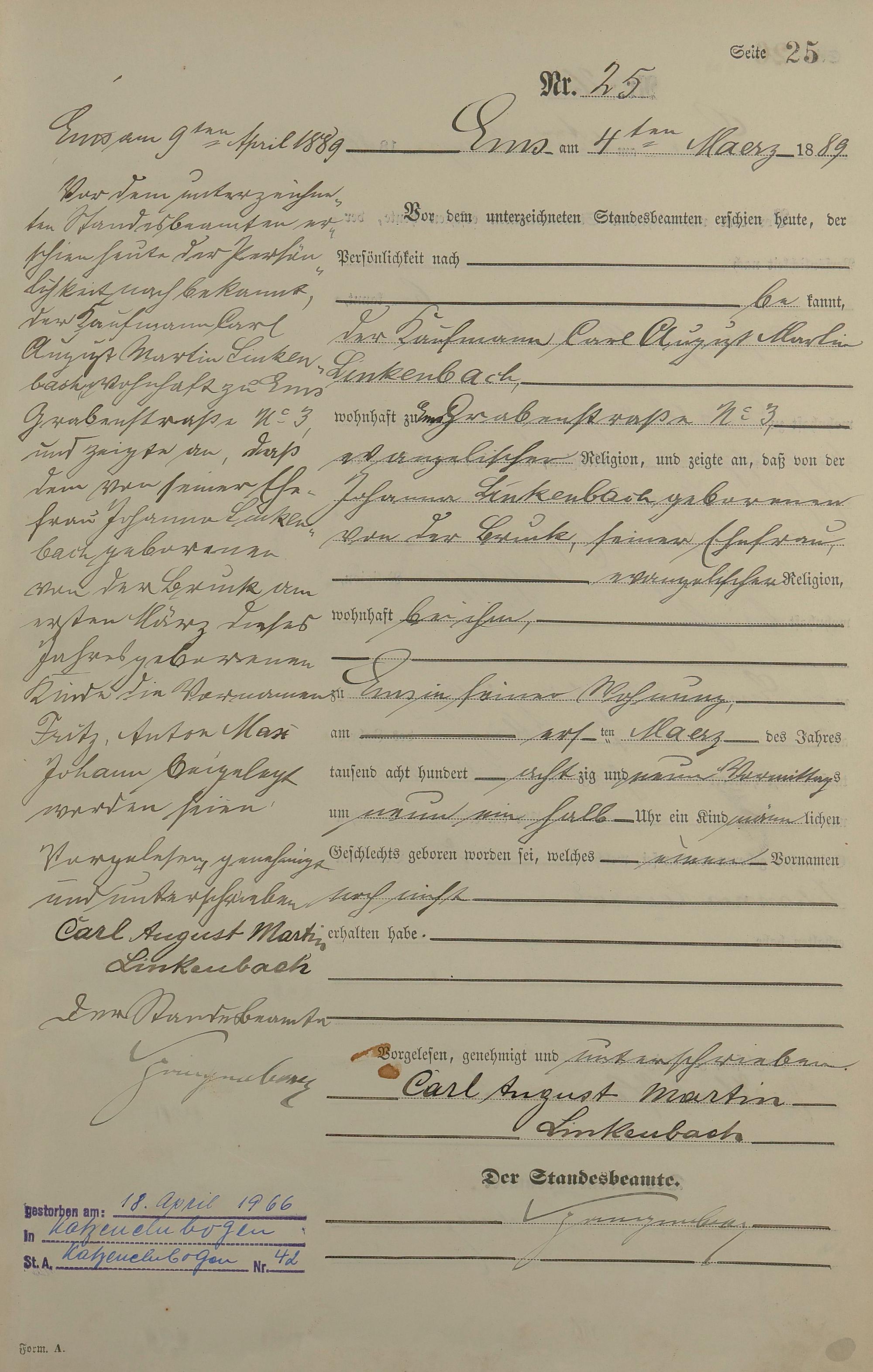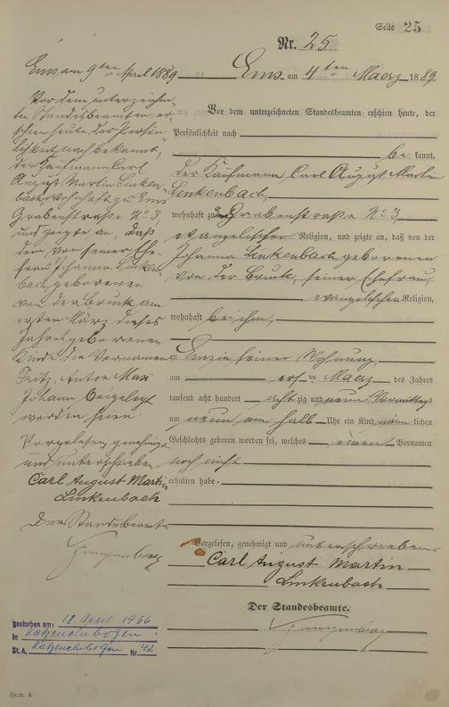 Geburtsregister 1889
