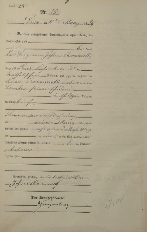 Geburtsregister 1889