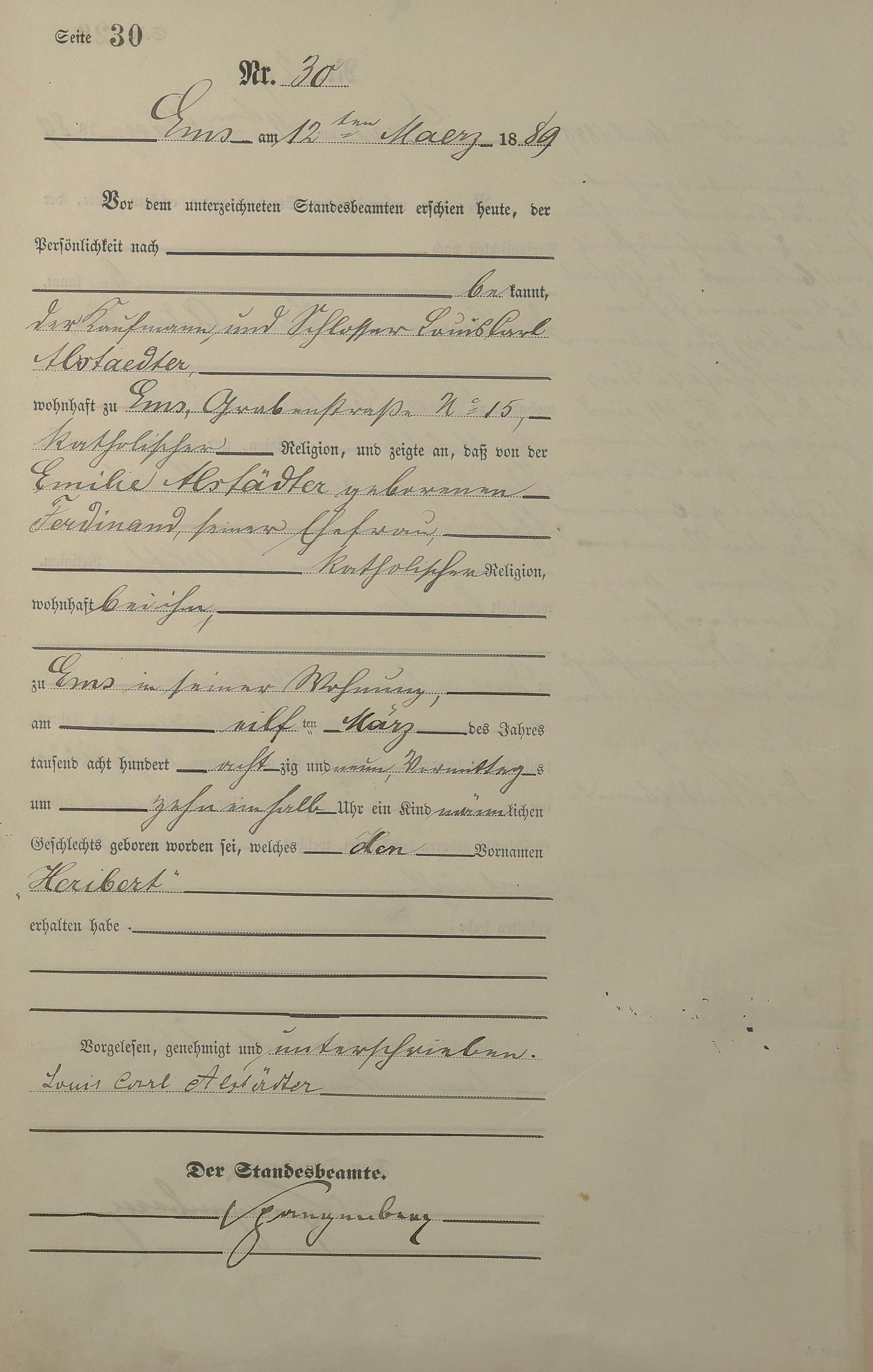 Geburtsregister 1889