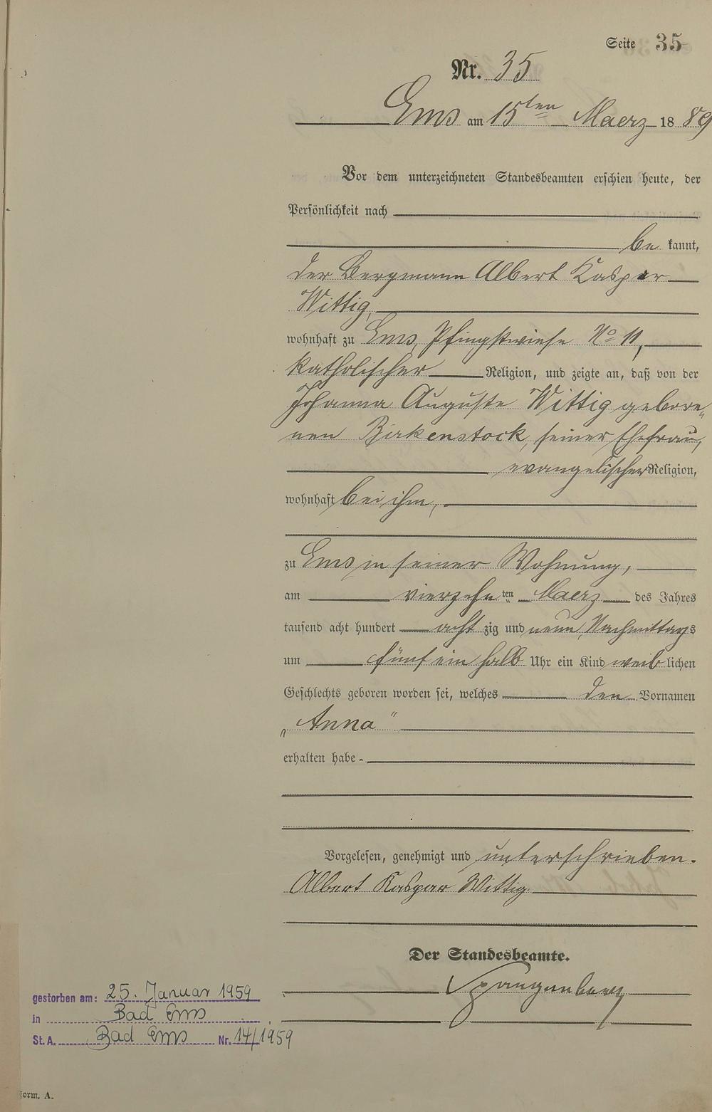 Geburtsregister 1889