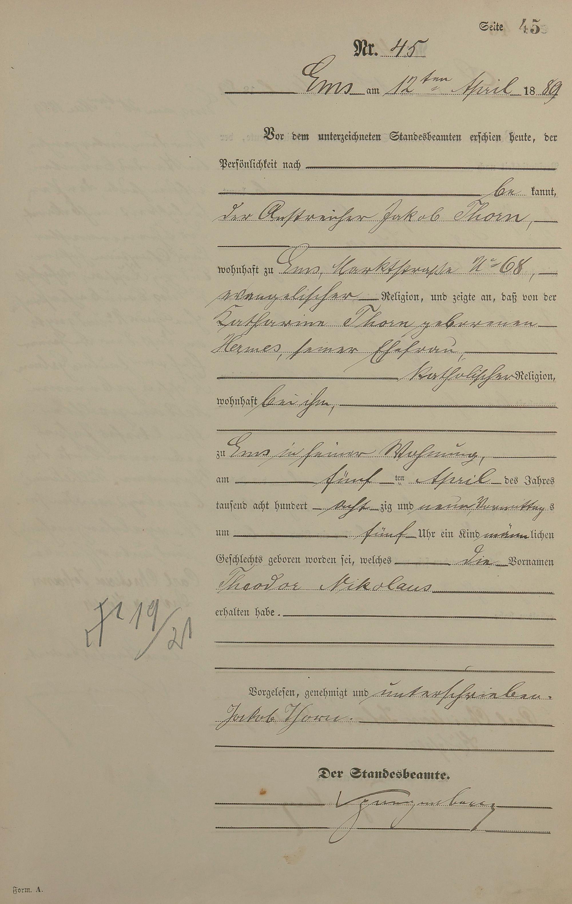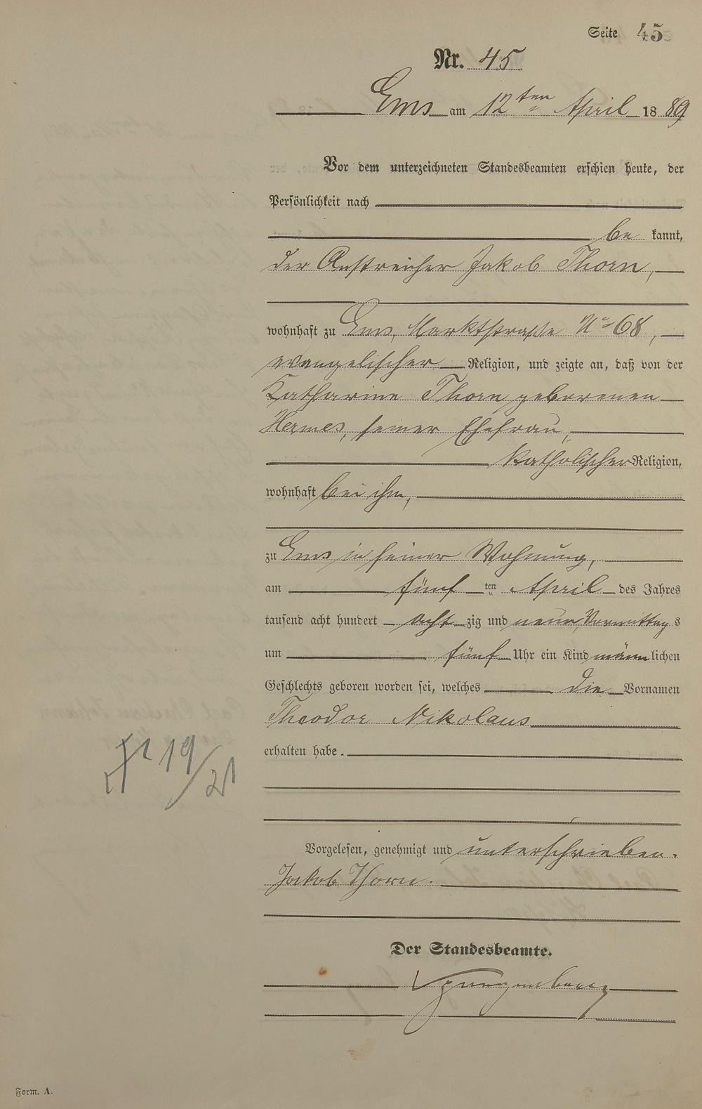 Geburtsregister 1889