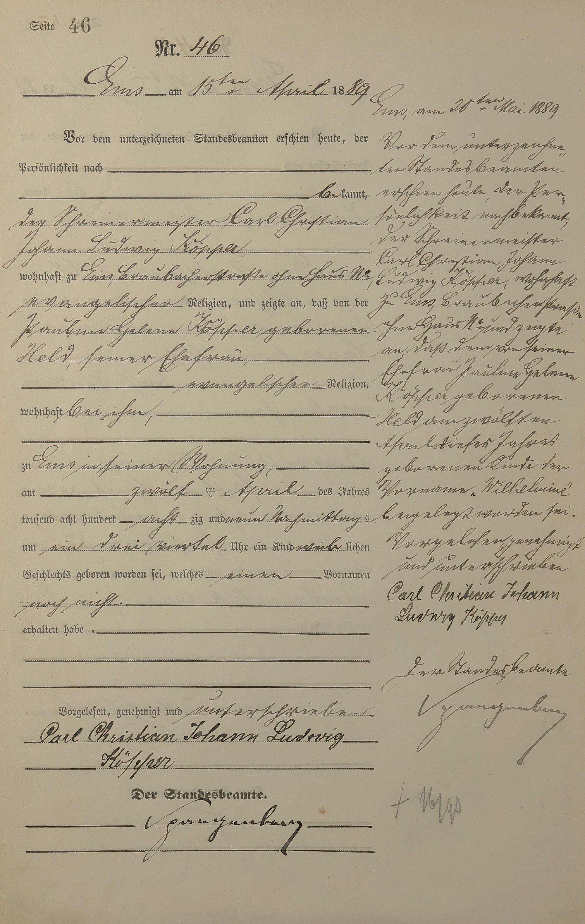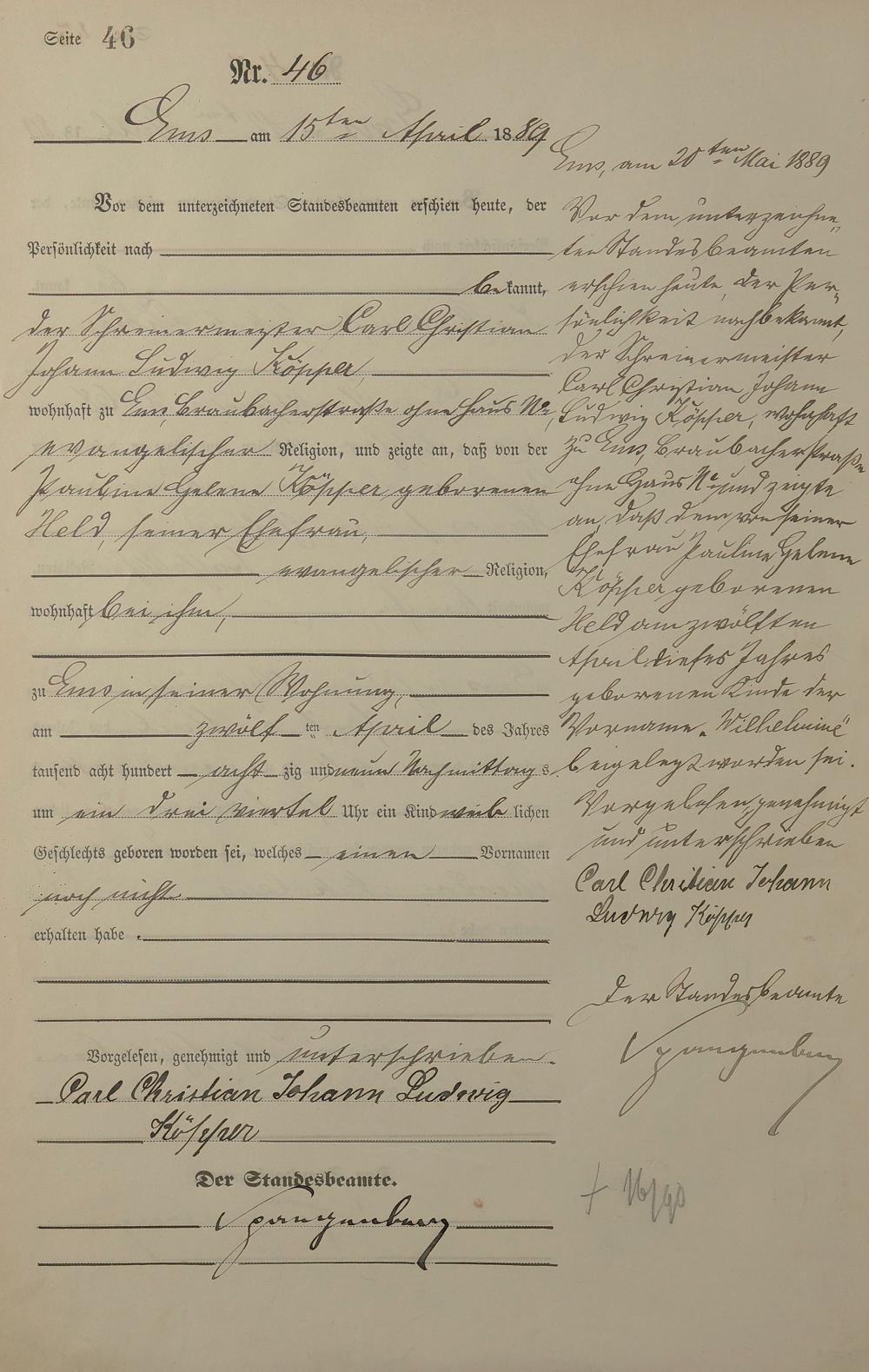 Geburtsregister 1889
