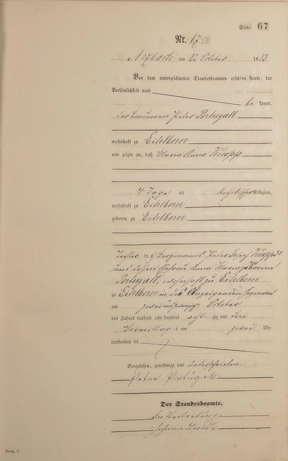 Sterberegister 1883