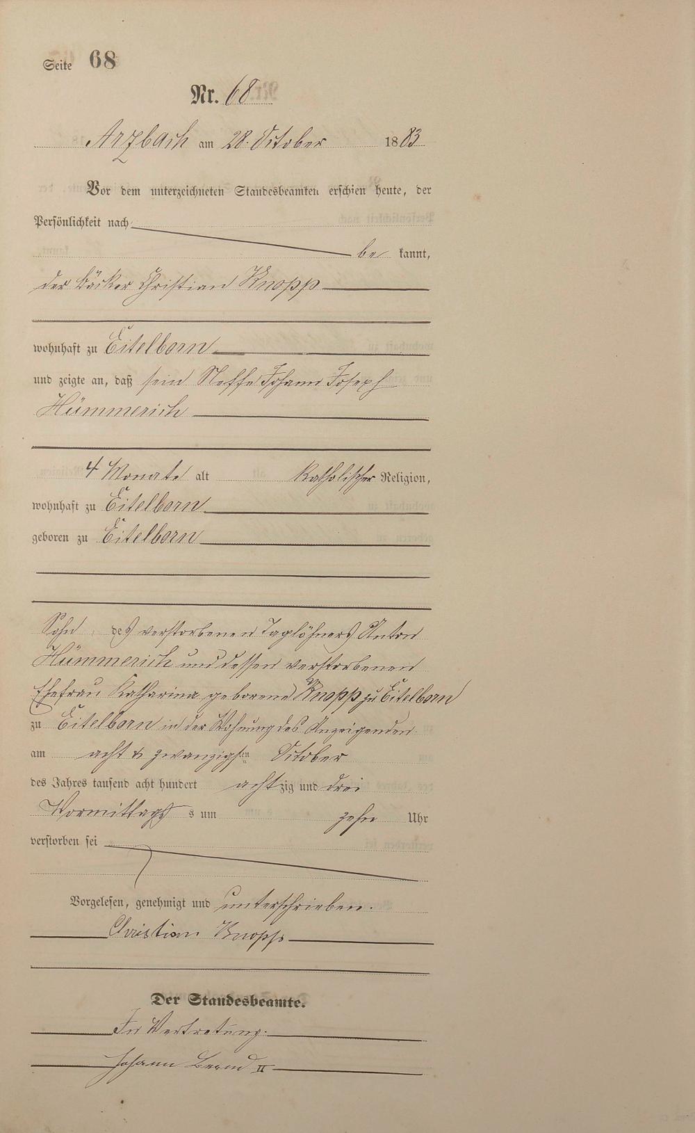 Sterberegister 1883