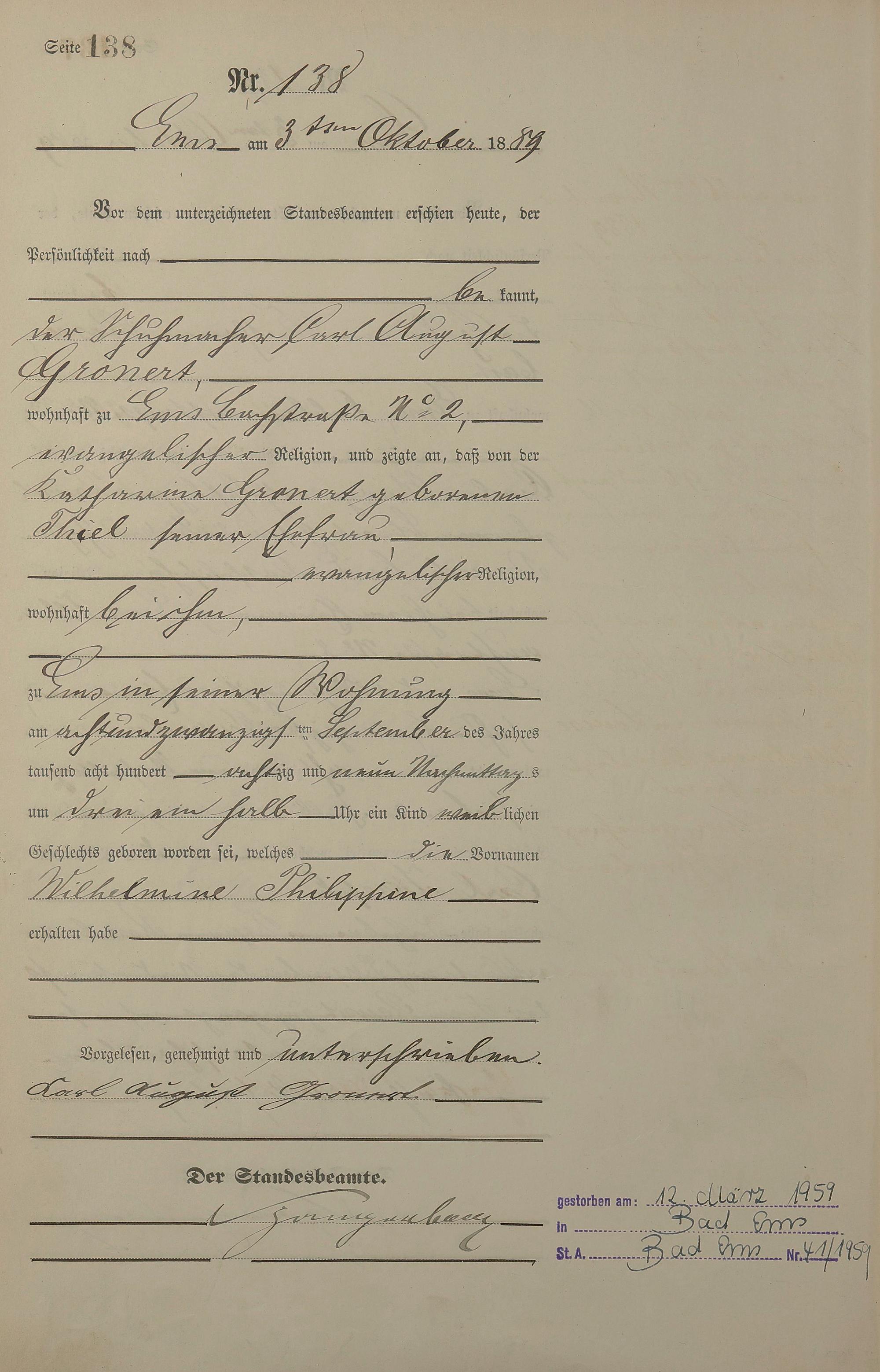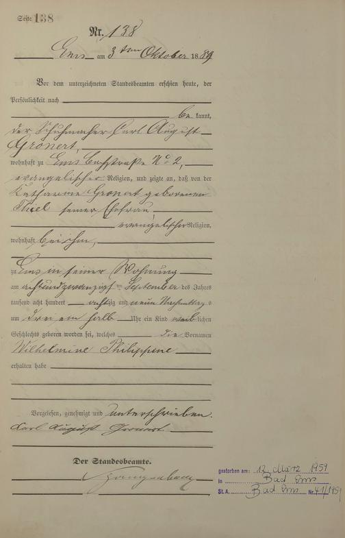 Geburtsregister 1889