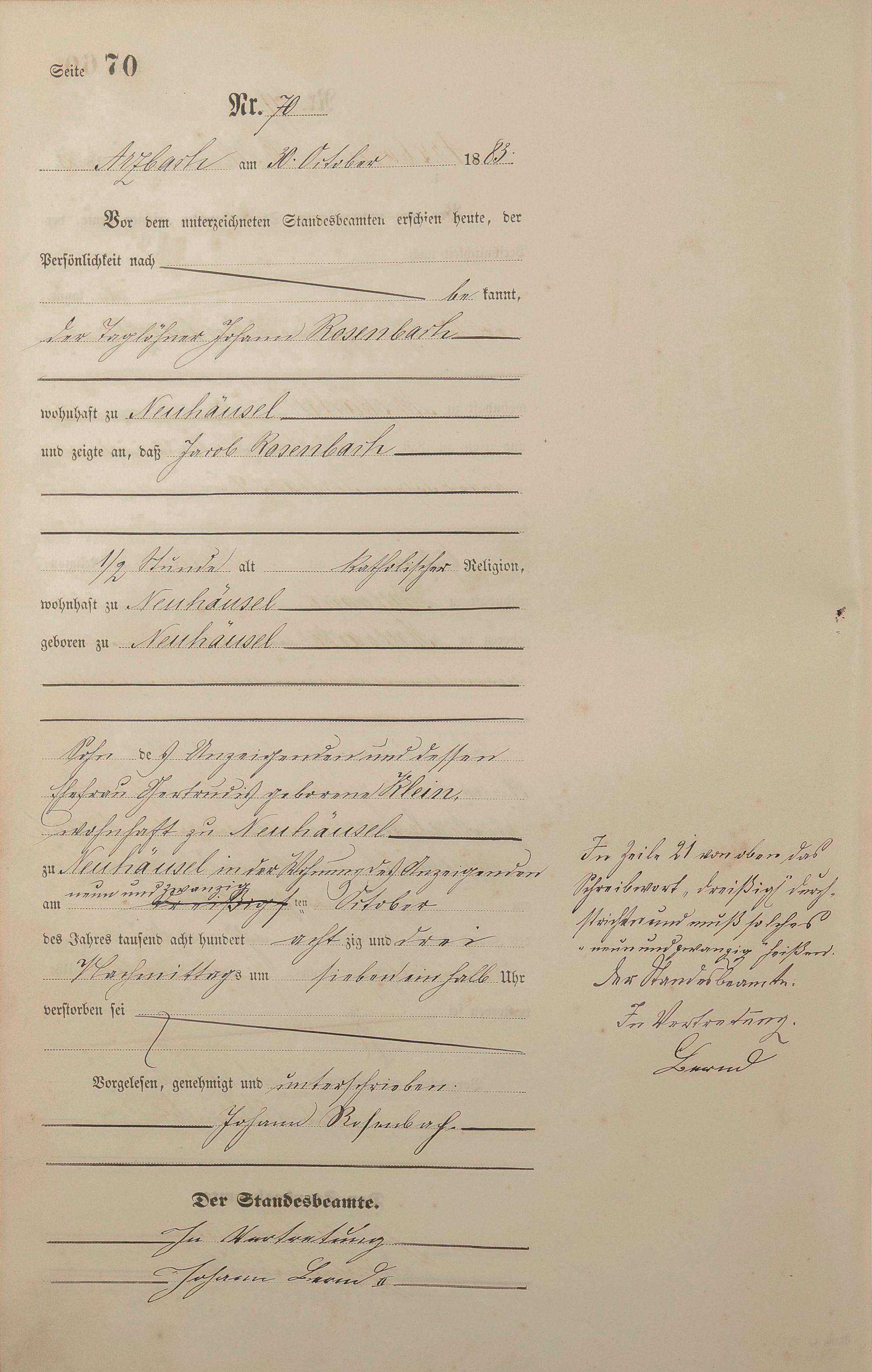 Sterberegister 1883