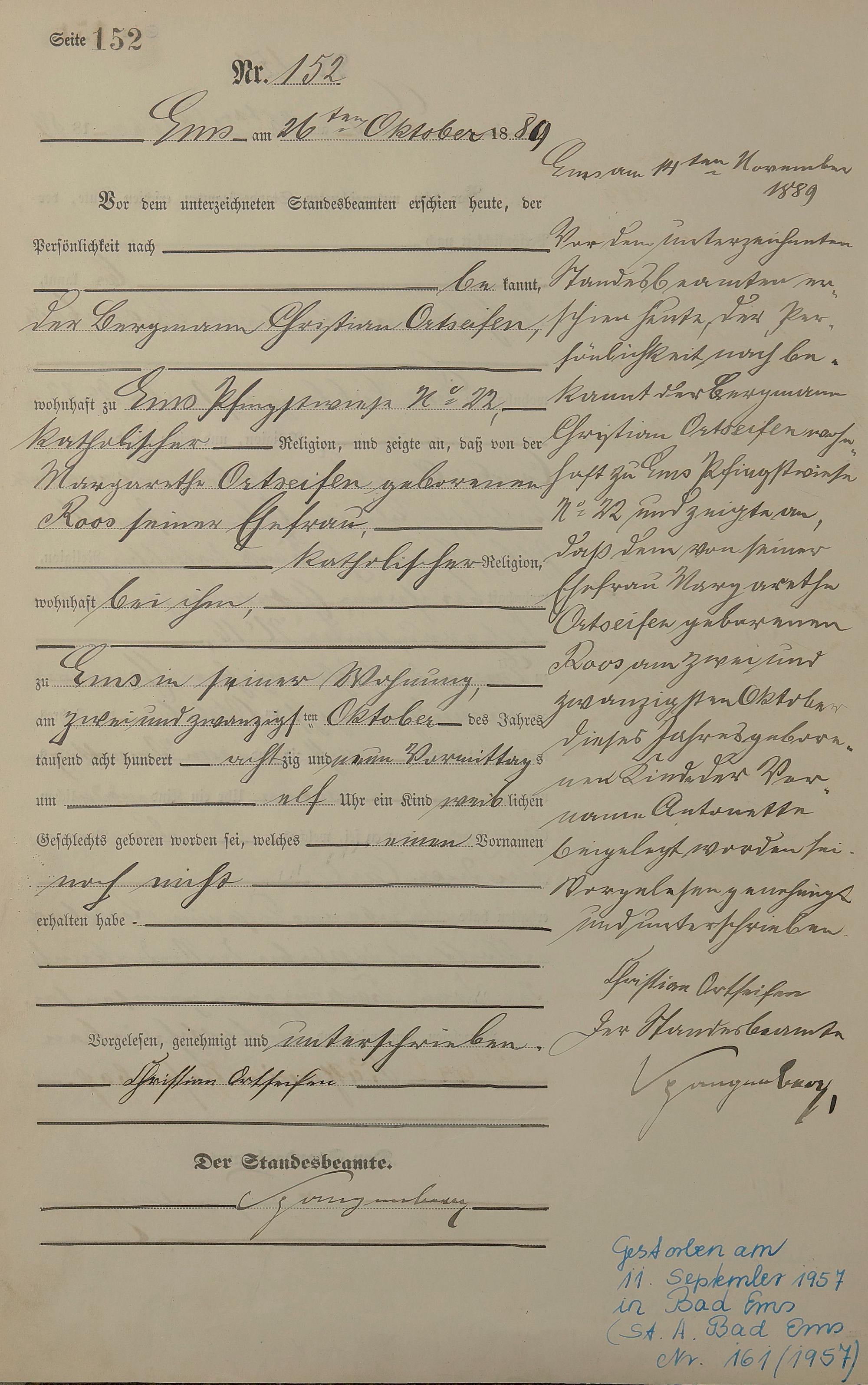 Geburtsregister 1889