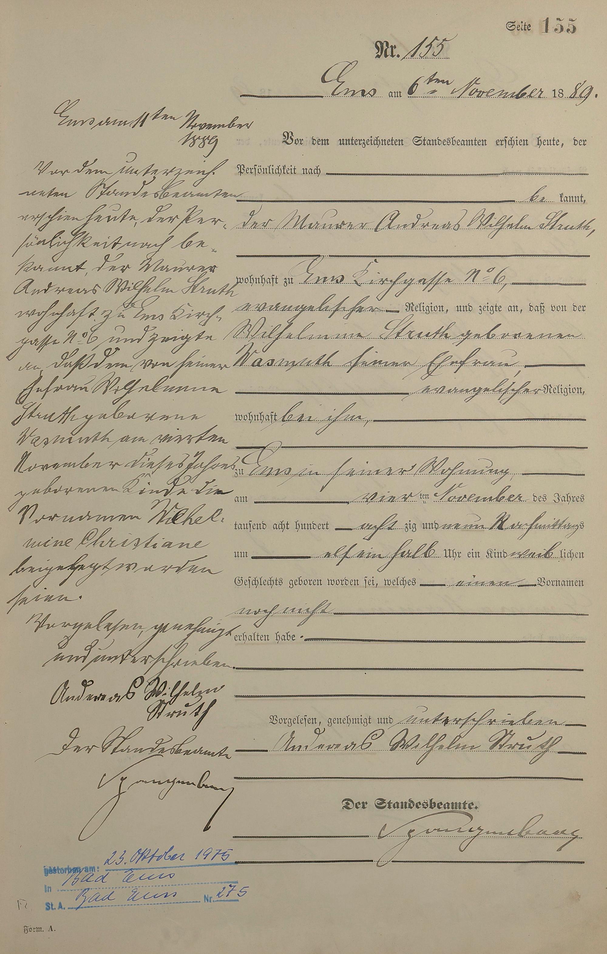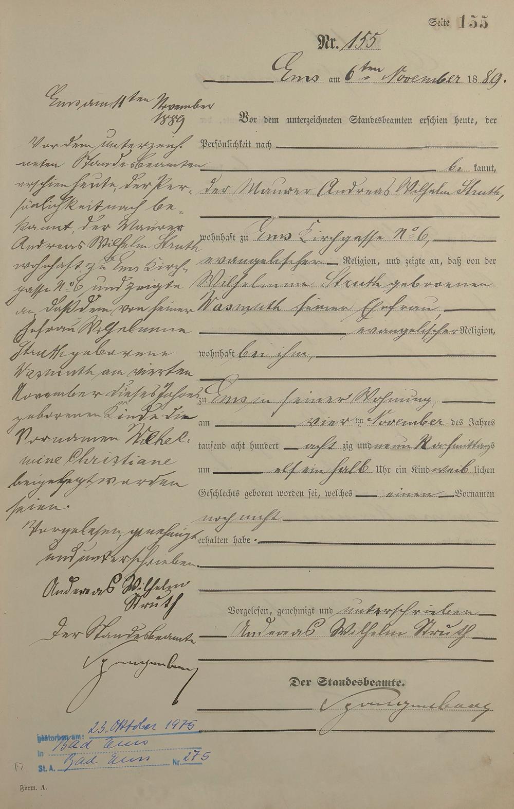 Geburtsregister 1889