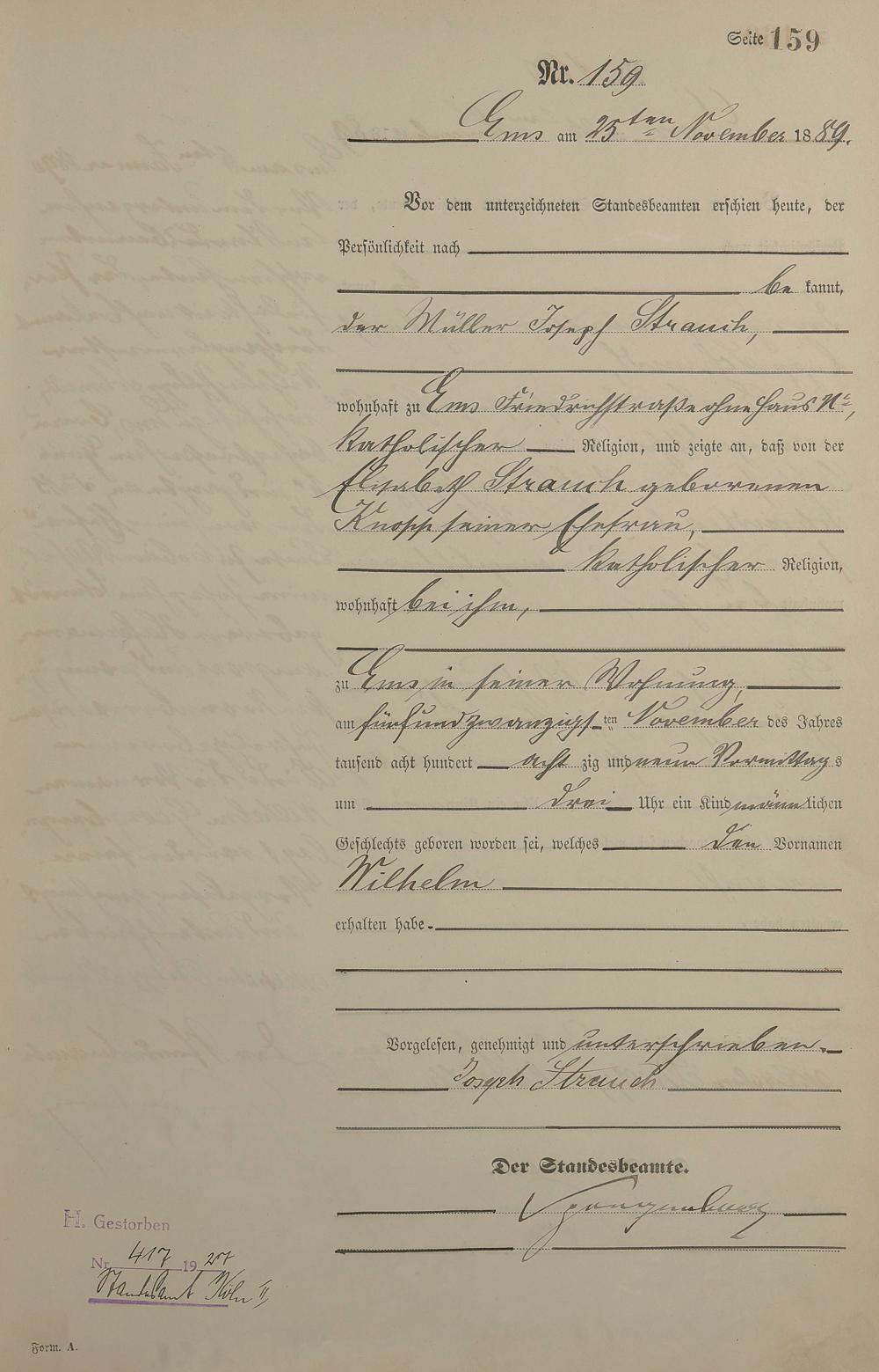 Geburtsregister 1889