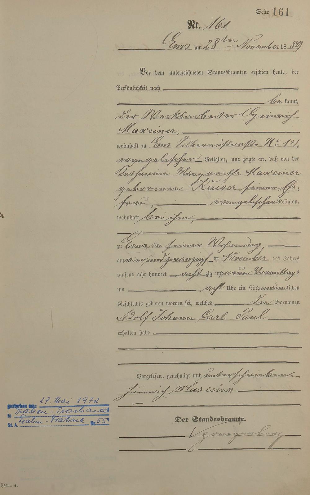 Geburtsregister 1889
