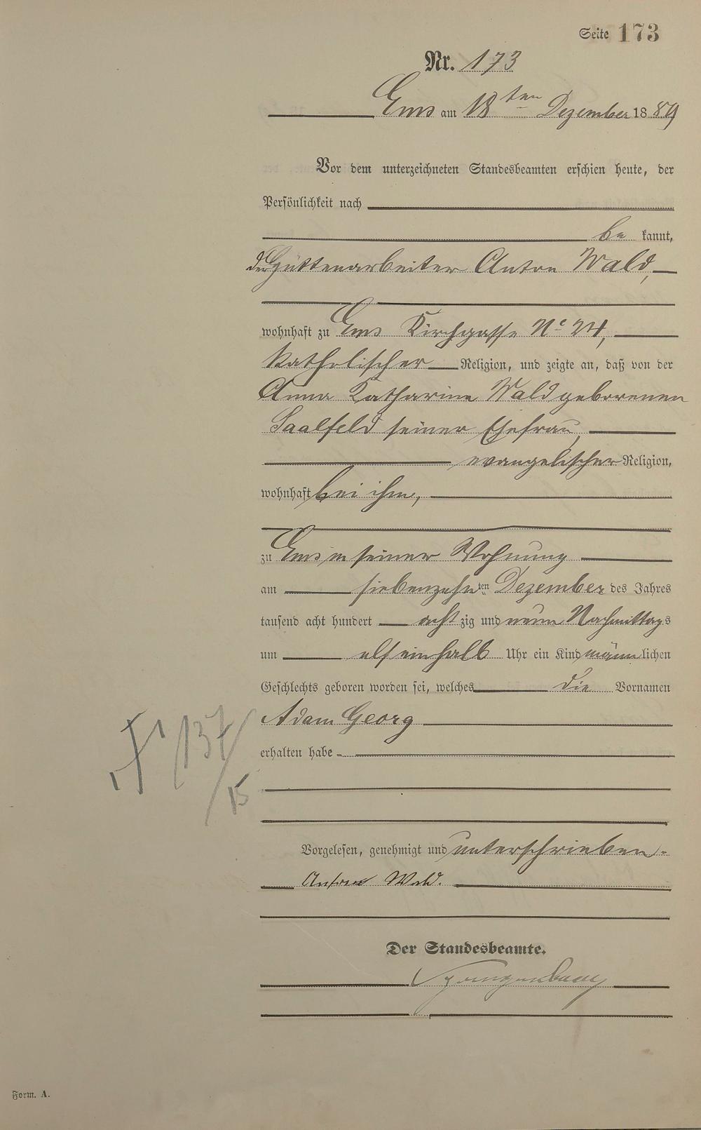 Geburtsregister 1889