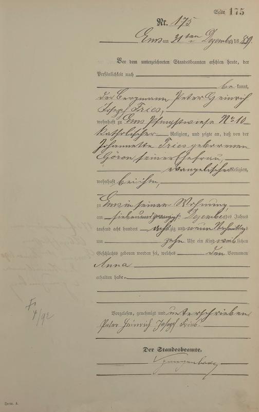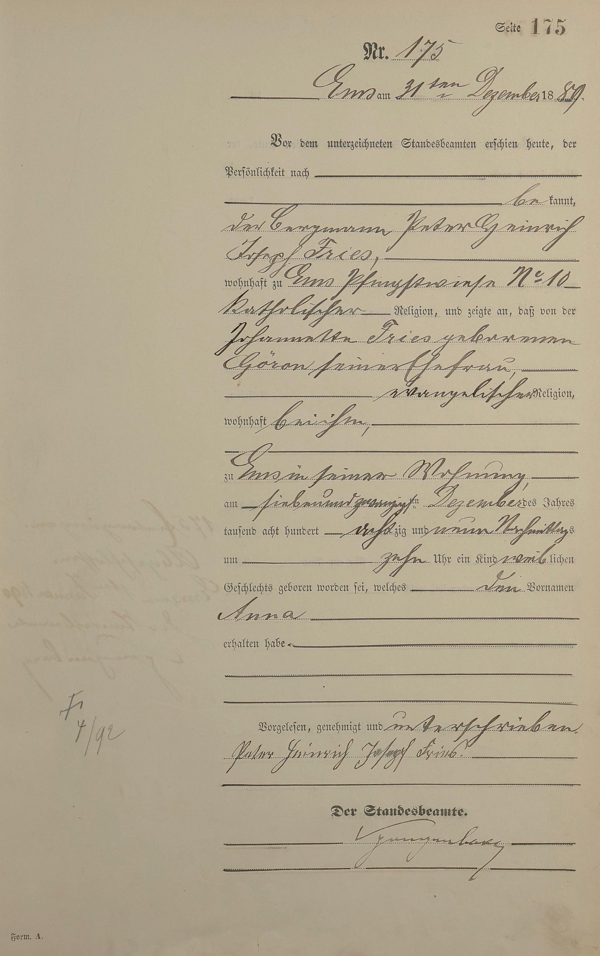 Geburtsregister 1889