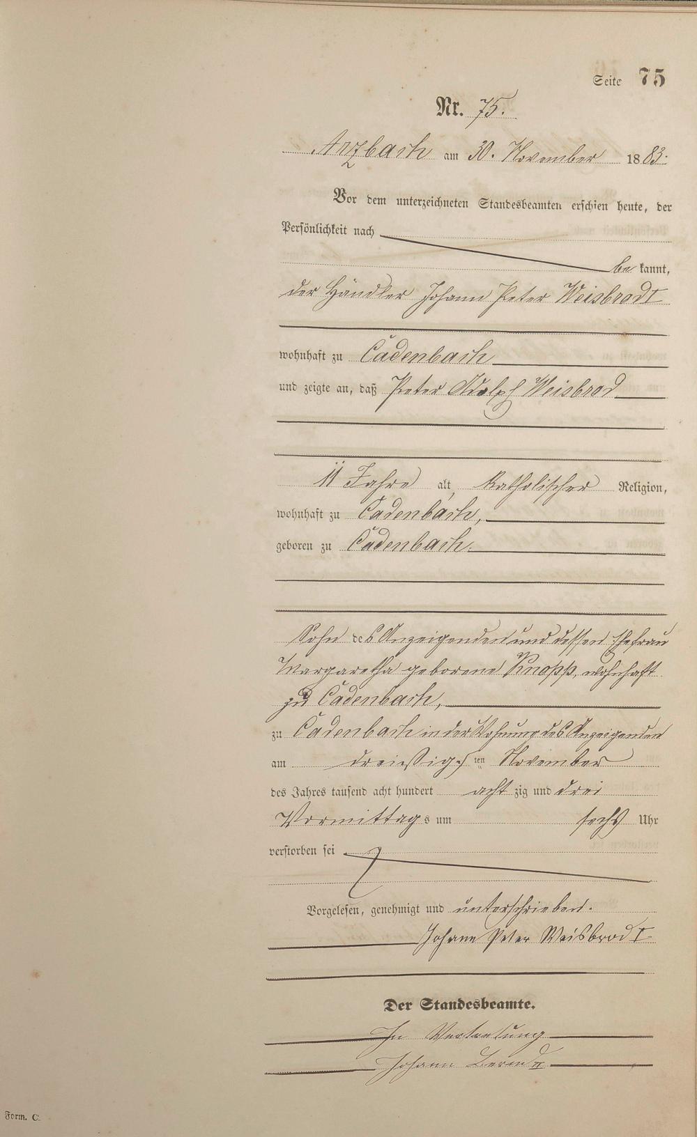 Sterberegister 1883