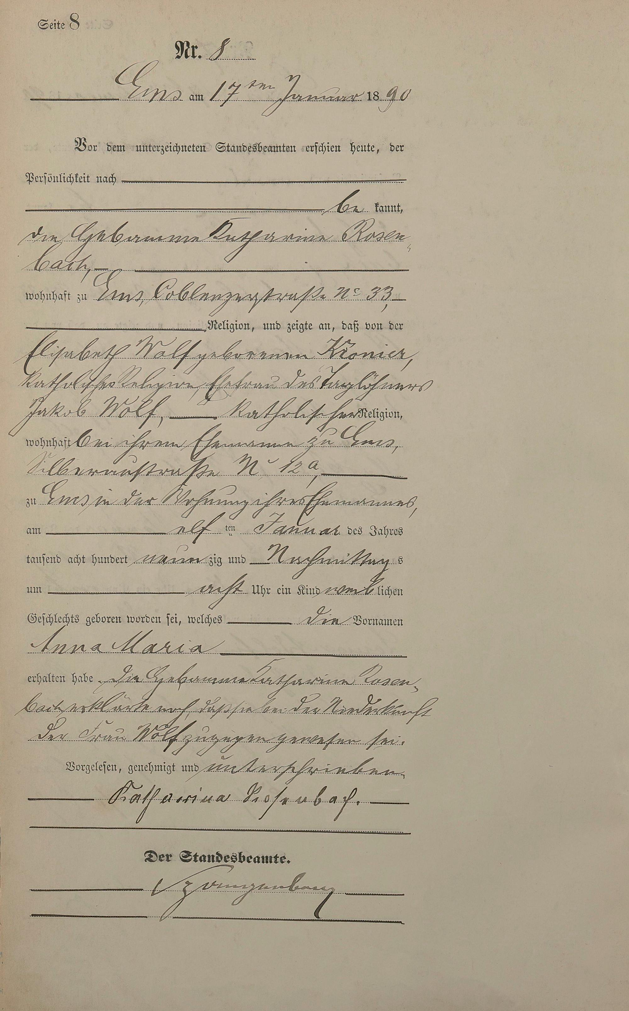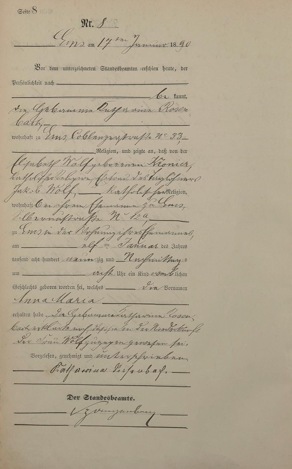 Geburtsregister 1890