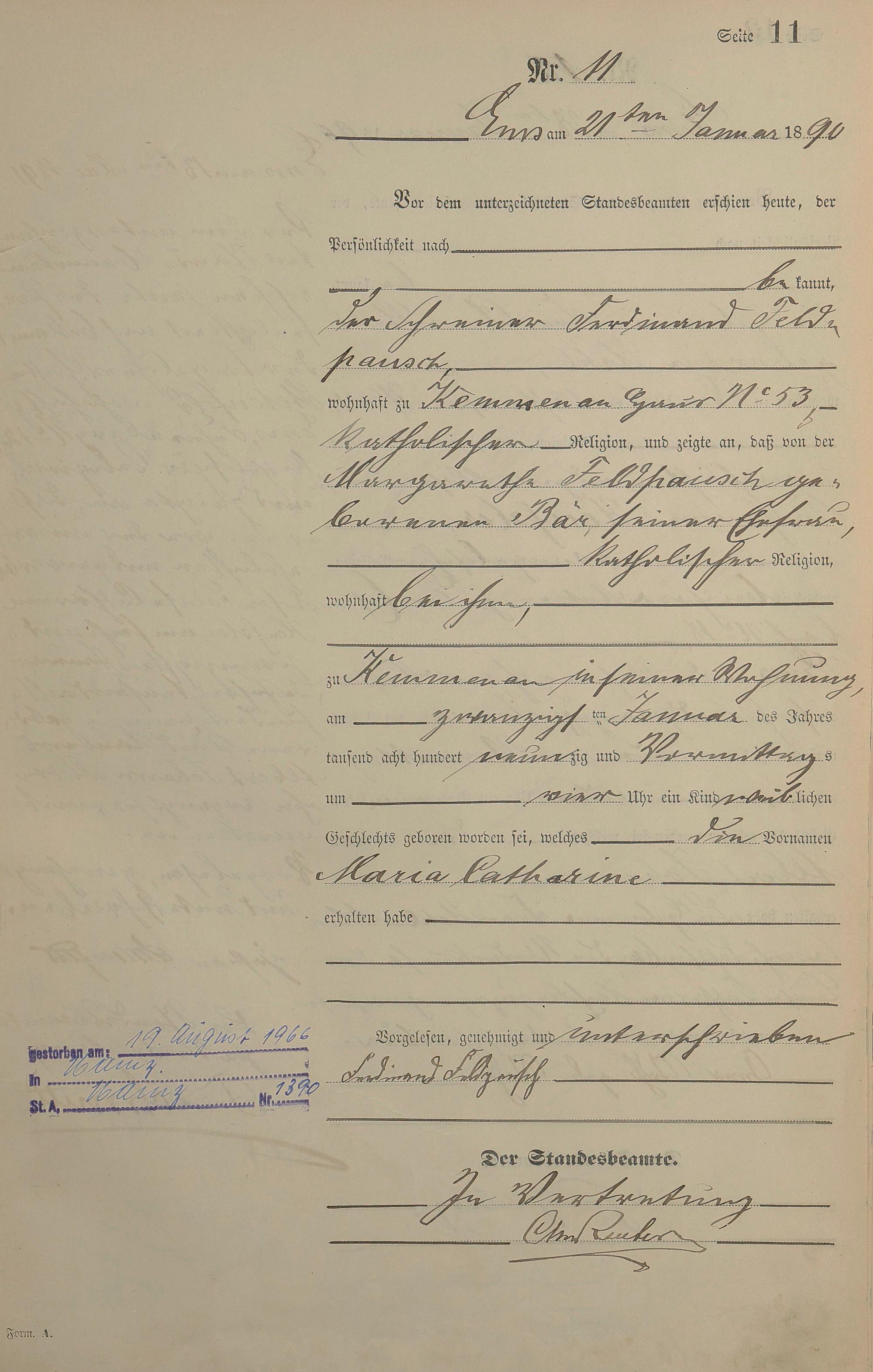 Geburtsregister 1890