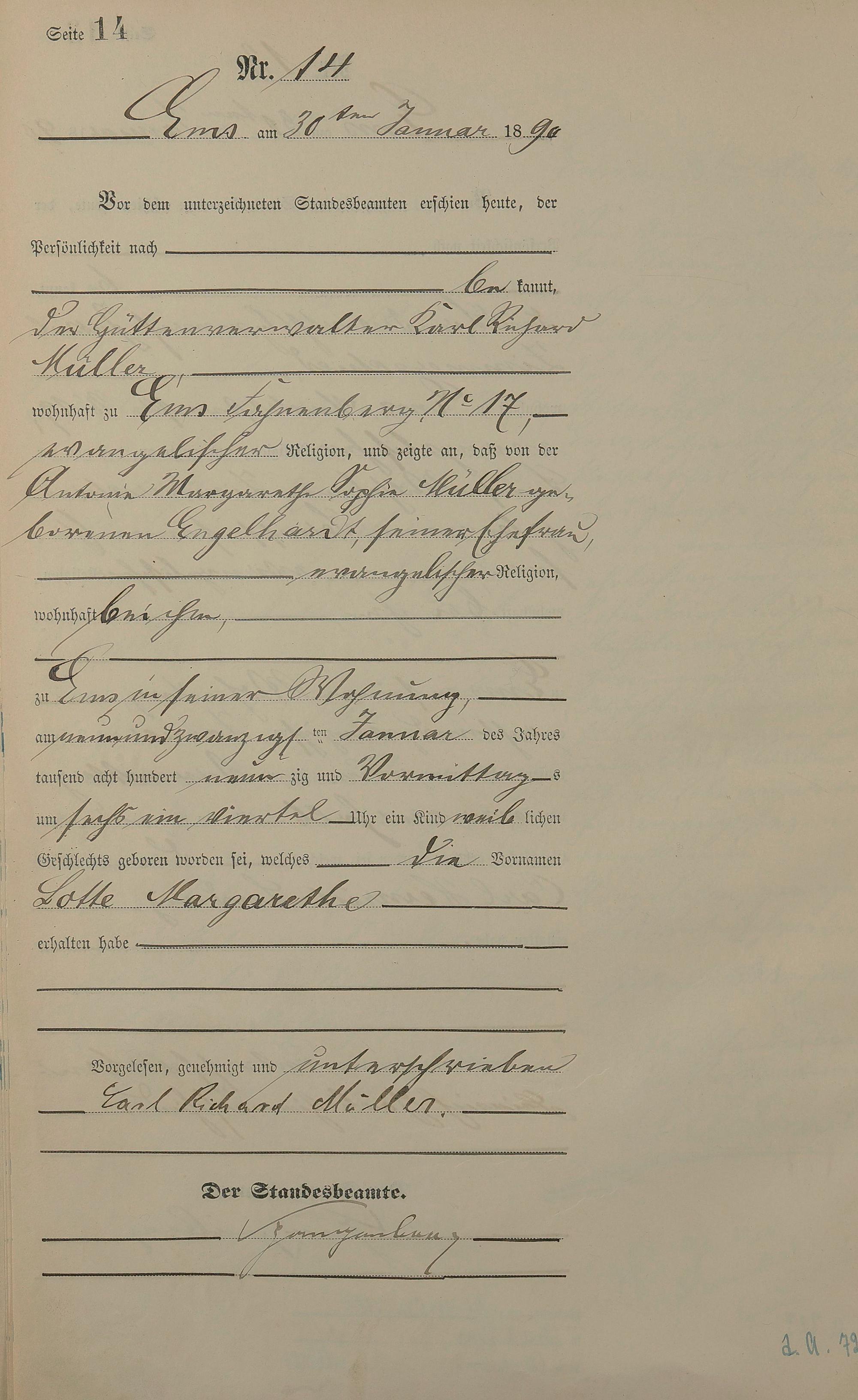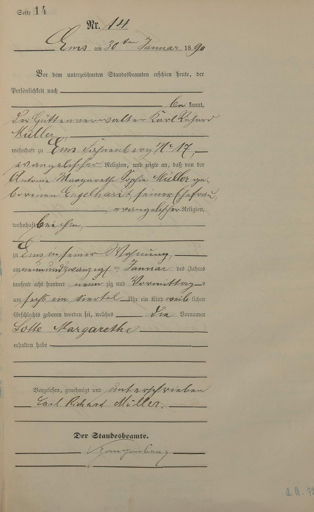 Geburtsregister 1890