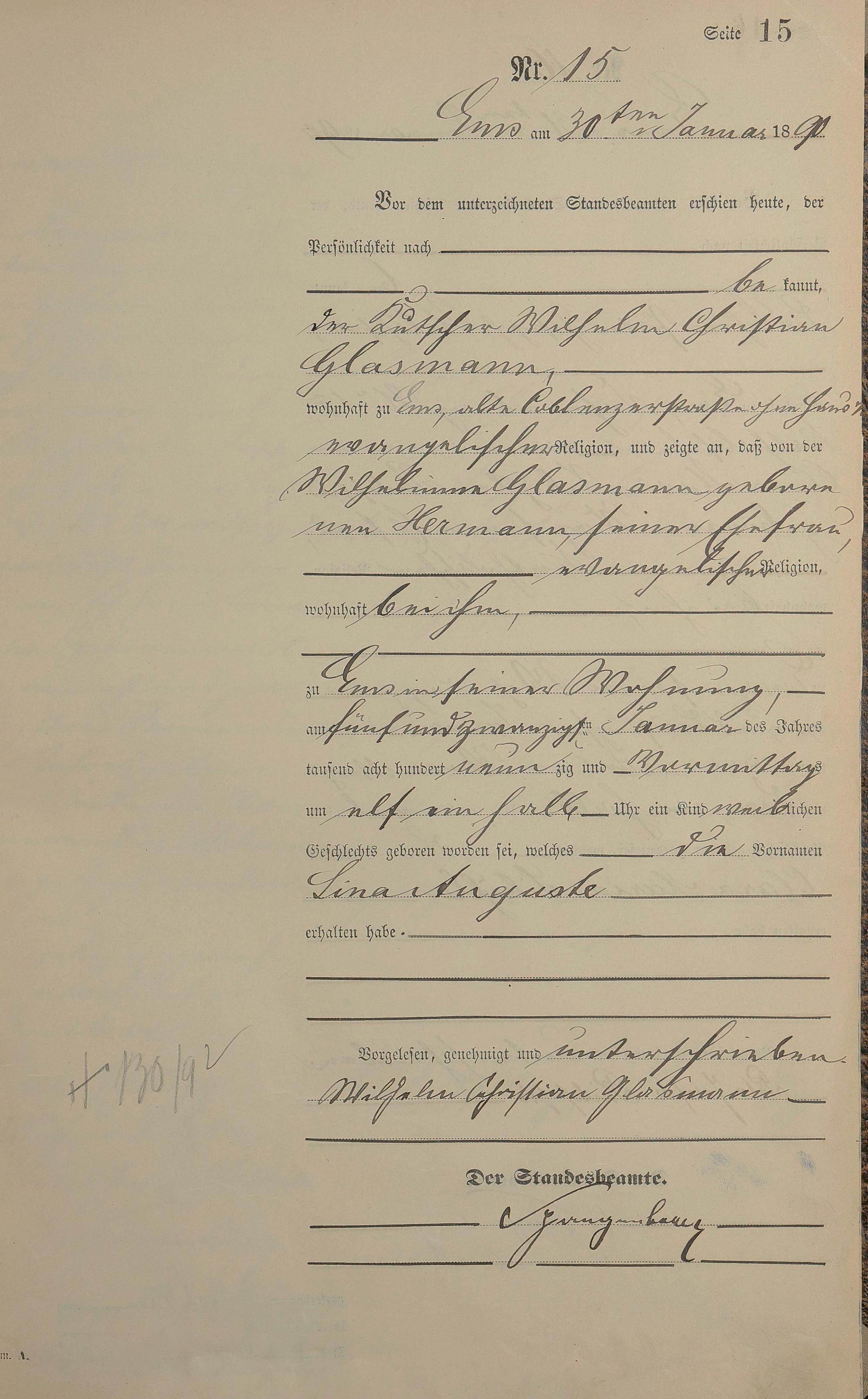 Geburtsregister 1890