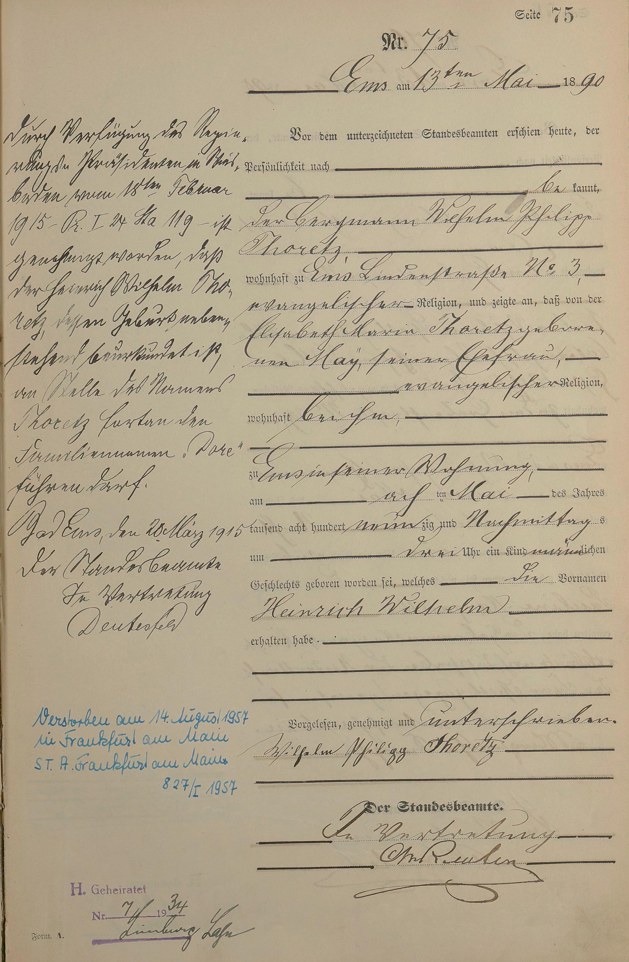 Geburtsregister 1890