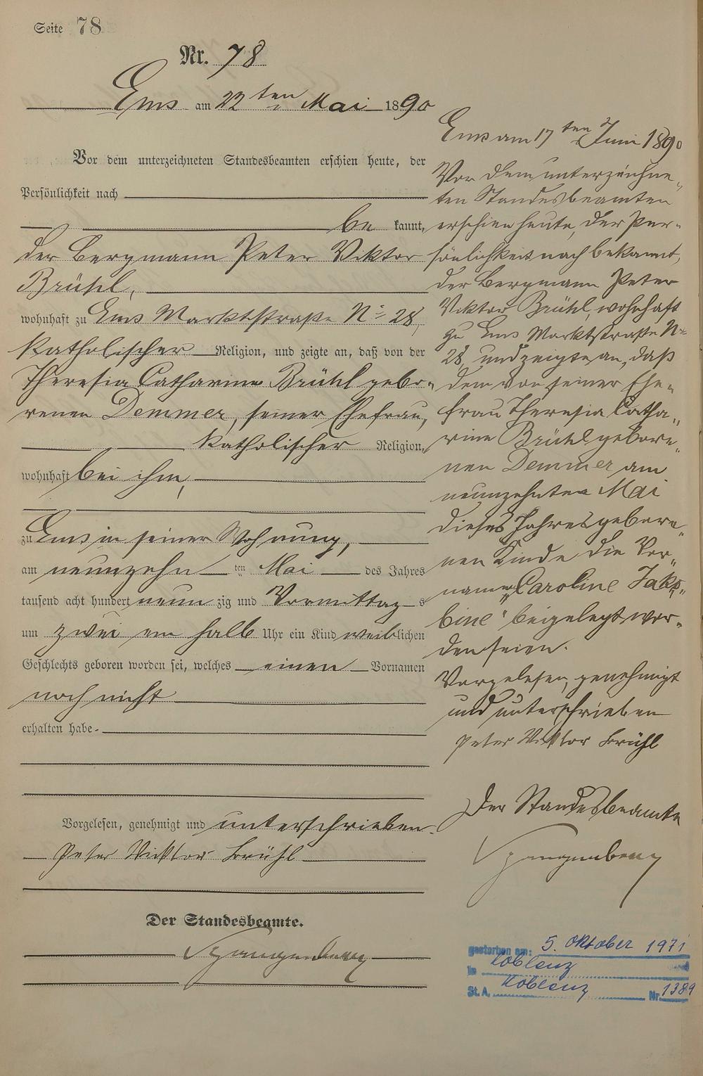 Geburtsregister 1890