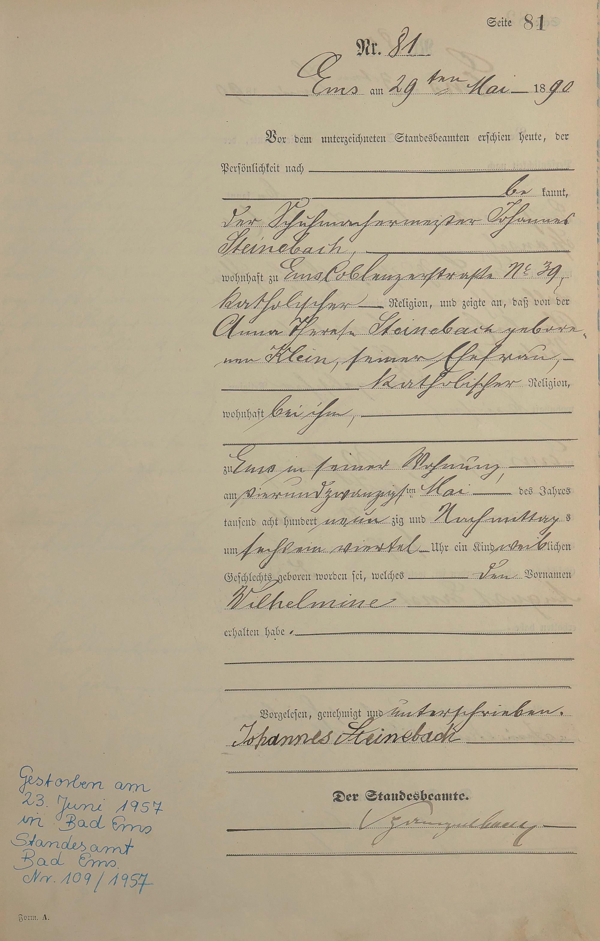 Geburtsregister 1890