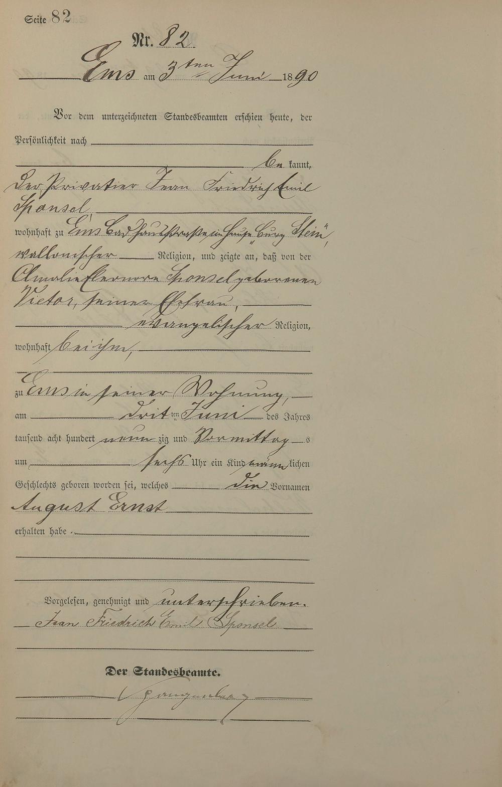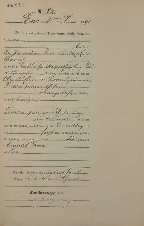 Geburtsregister 1890