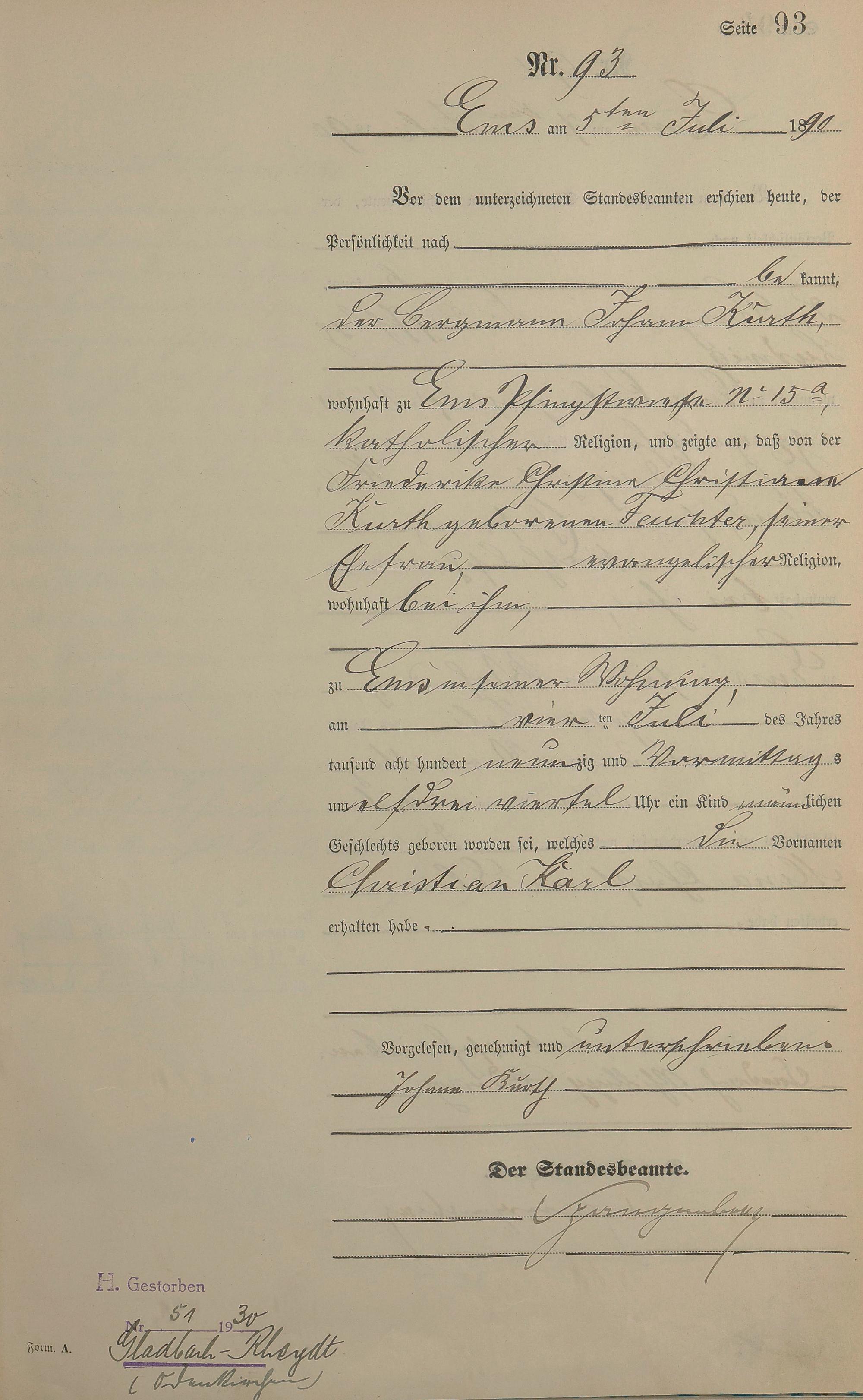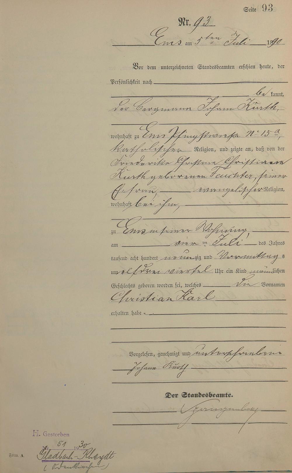 Geburtsregister 1890