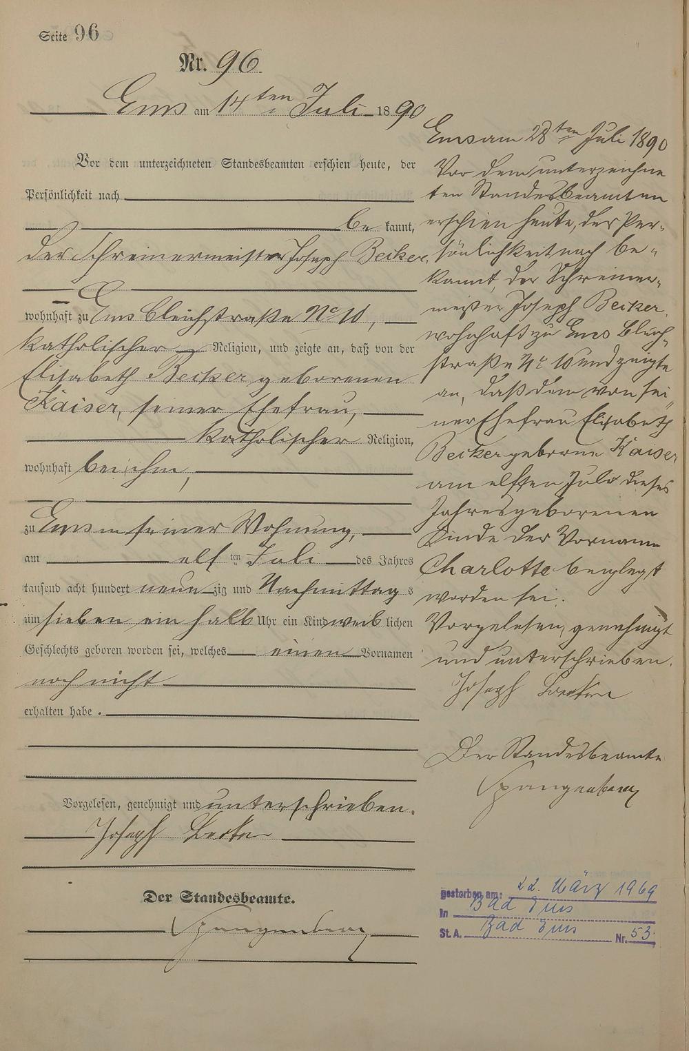 Geburtsregister 1890