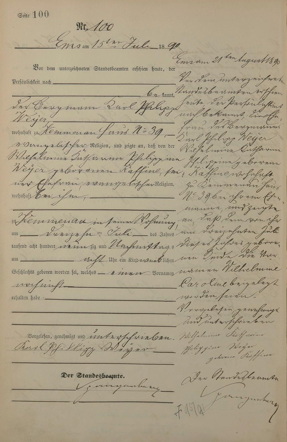 Geburtsregister 1890