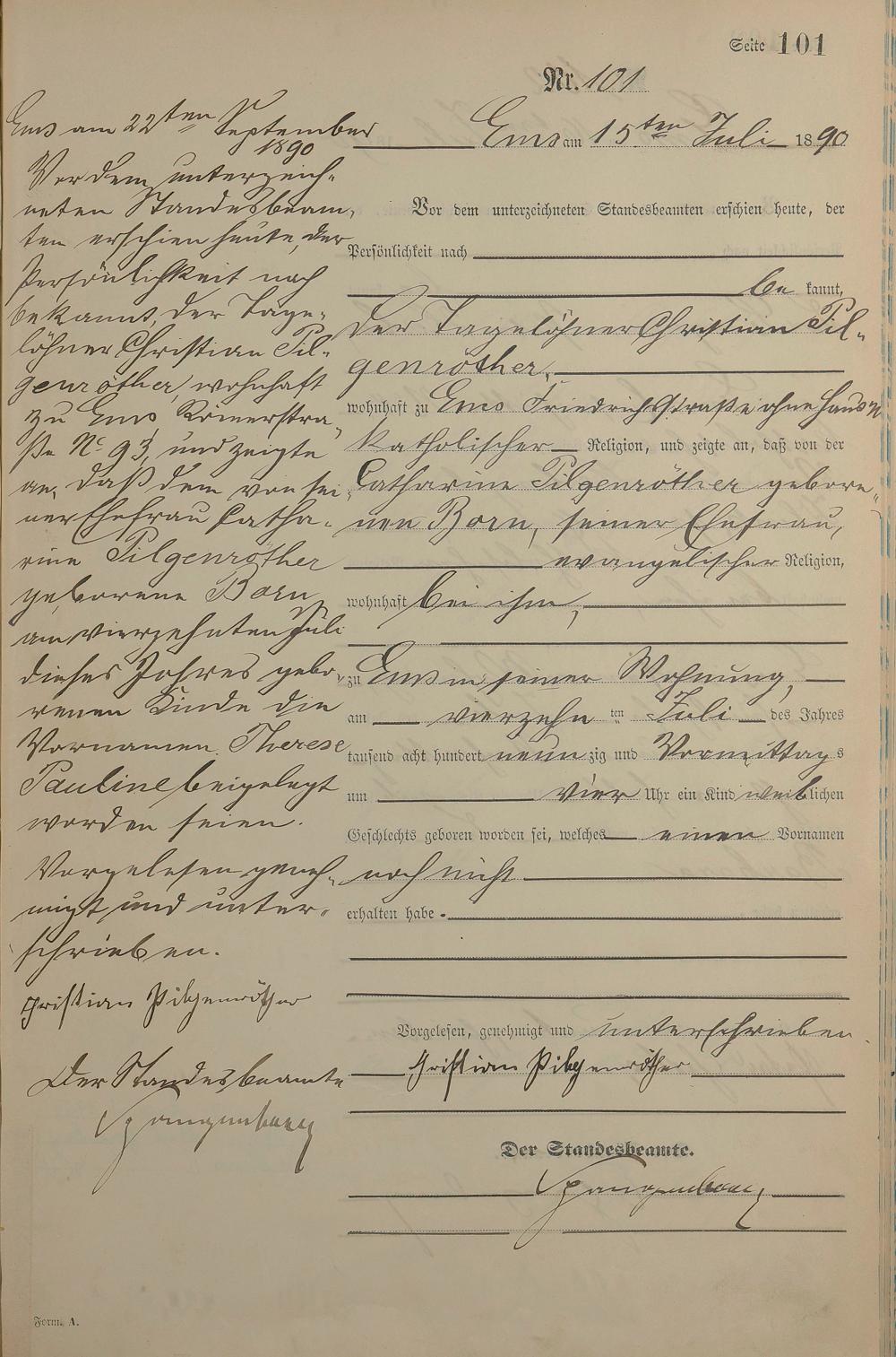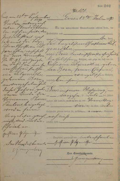 Geburtsregister 1890