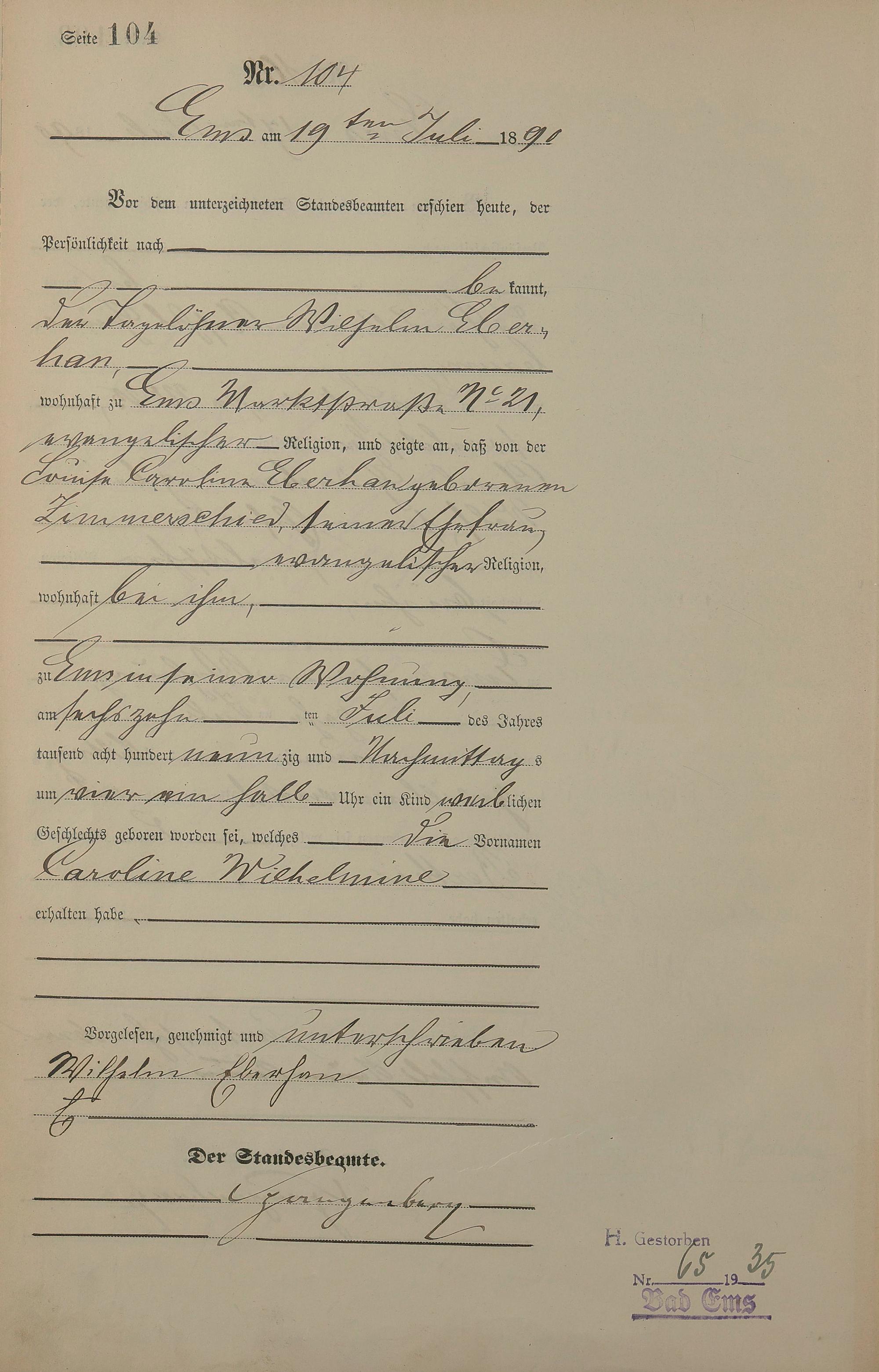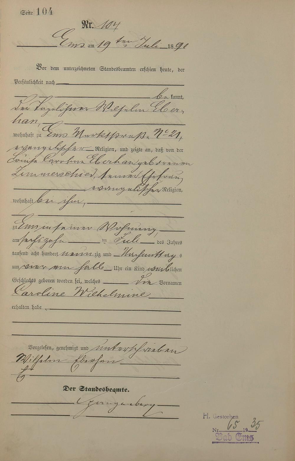 Geburtsregister 1890