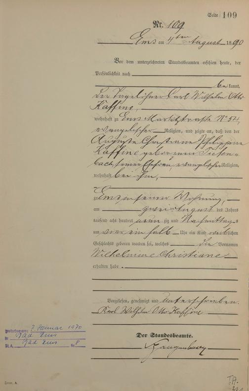 Geburtsregister 1890