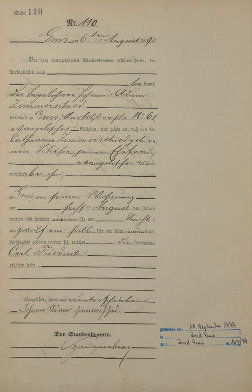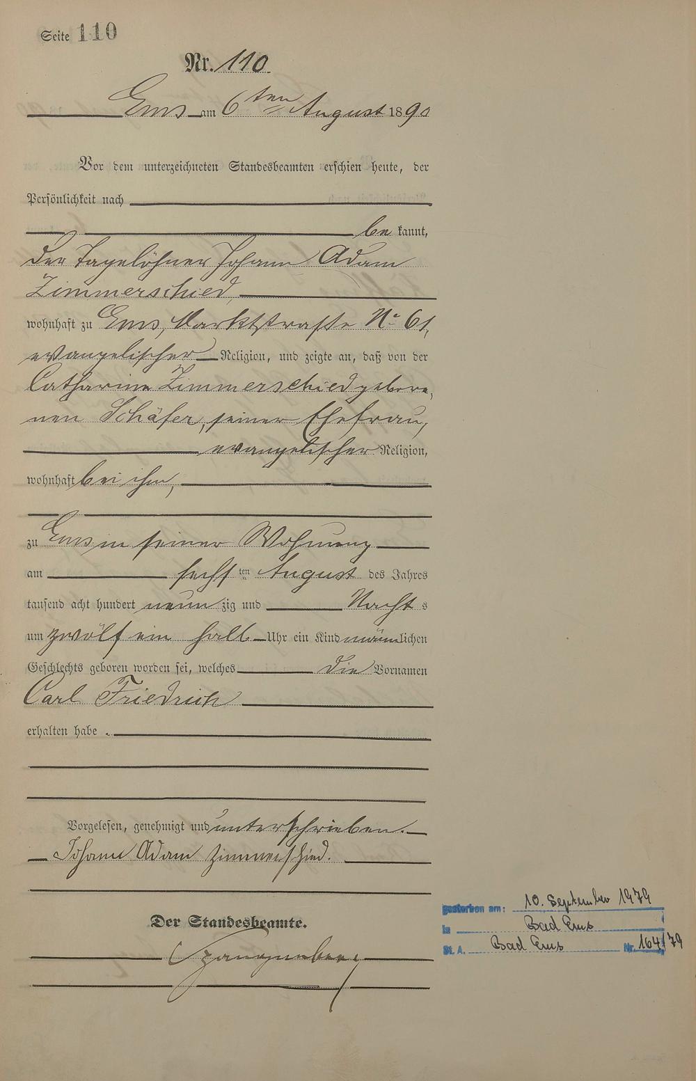 Geburtsregister 1890