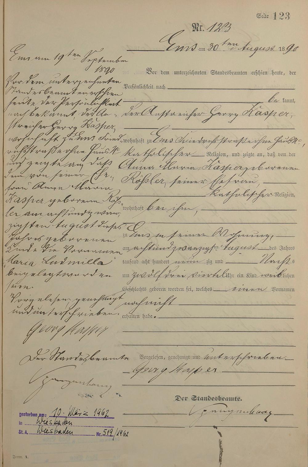 Geburtsregister 1890