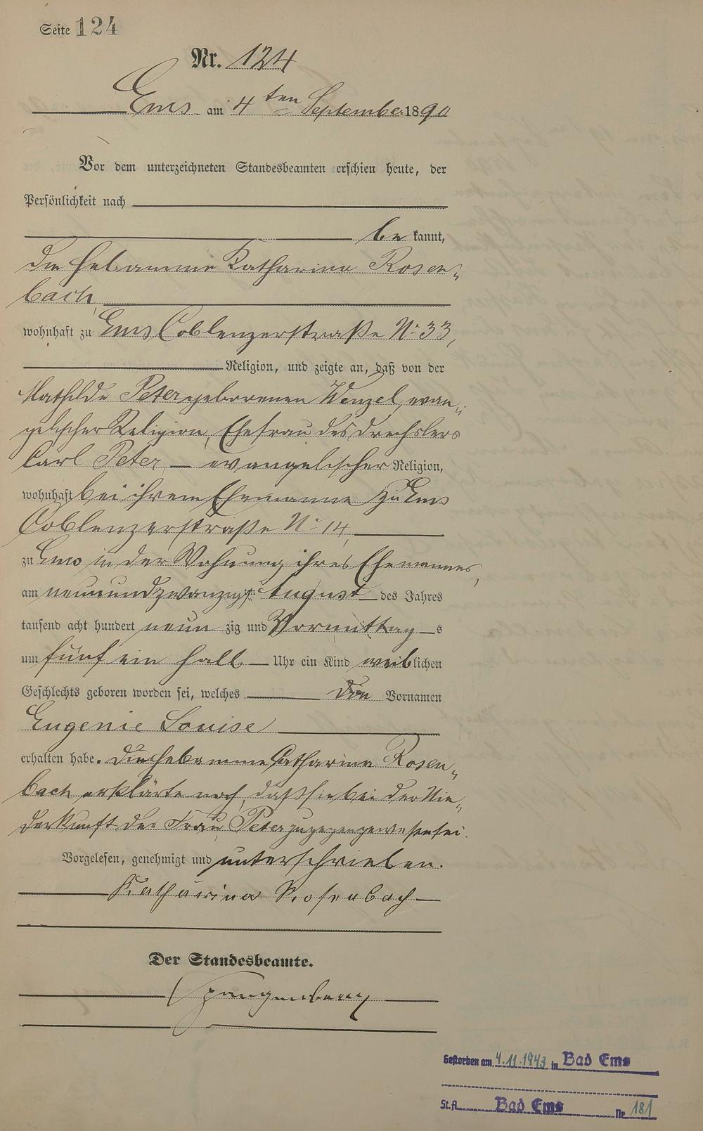 Geburtsregister 1890