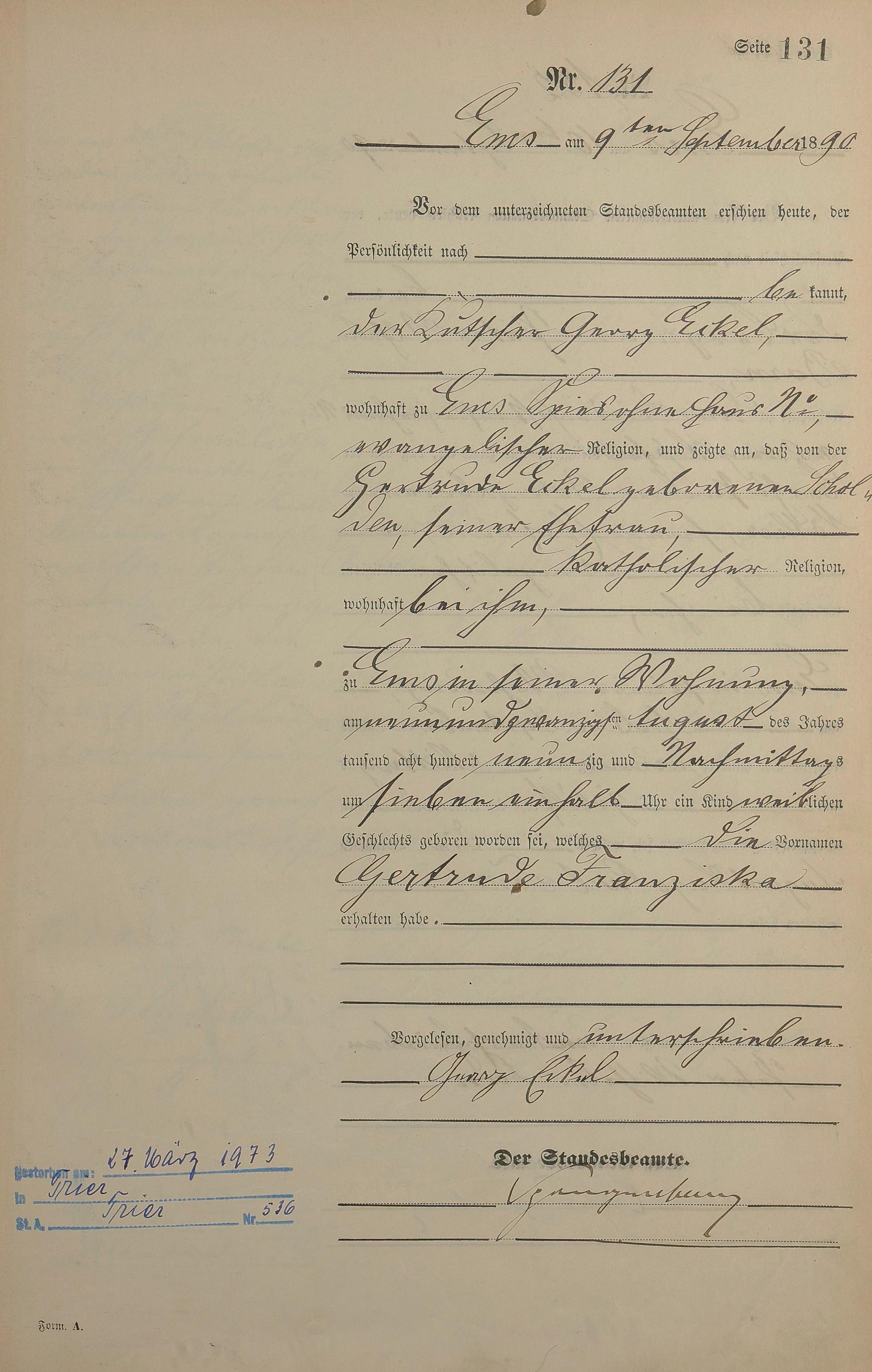 Geburtsregister 1890
