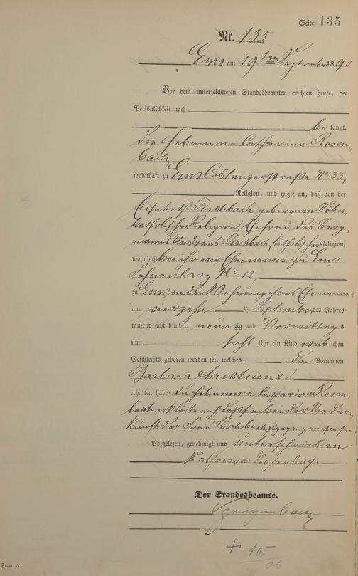 Geburtsregister 1890