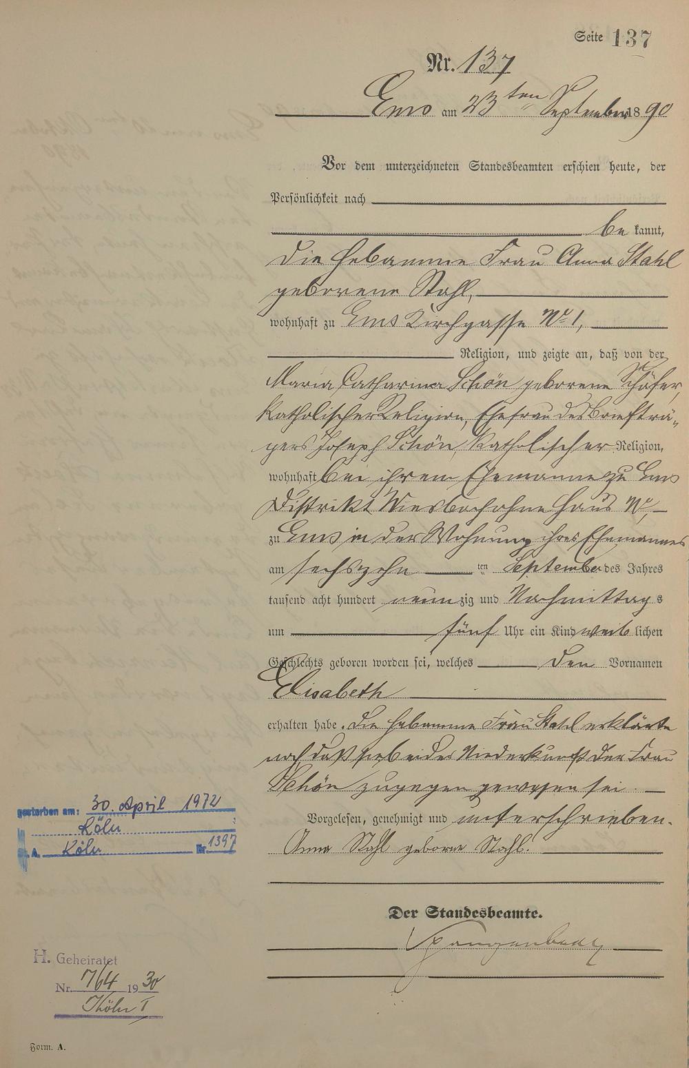 Geburtsregister 1890