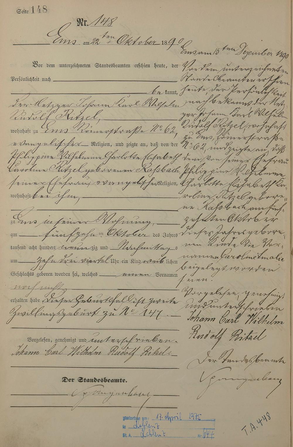 Geburtsregister 1890