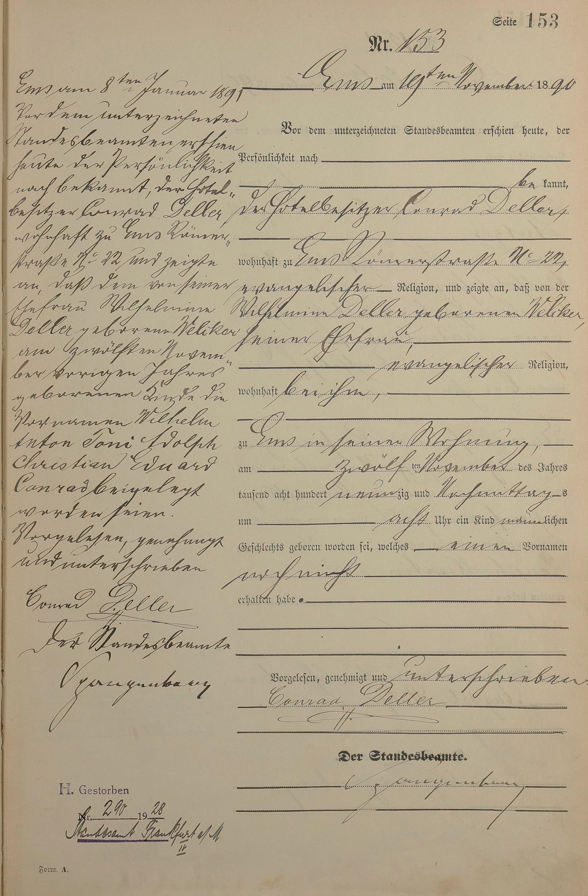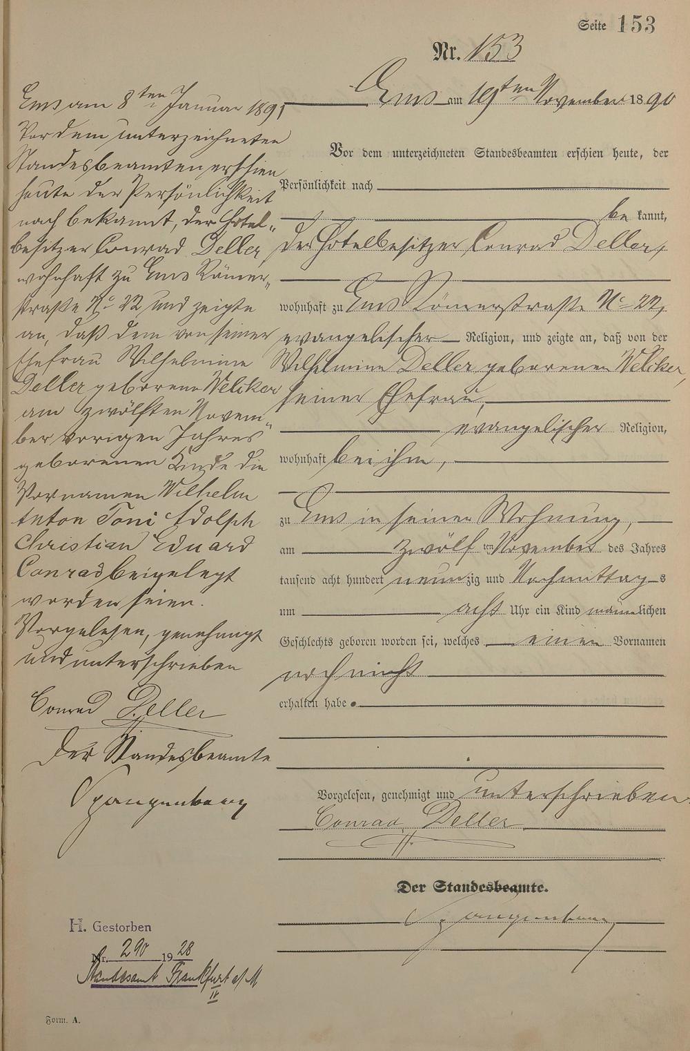 Geburtsregister 1890