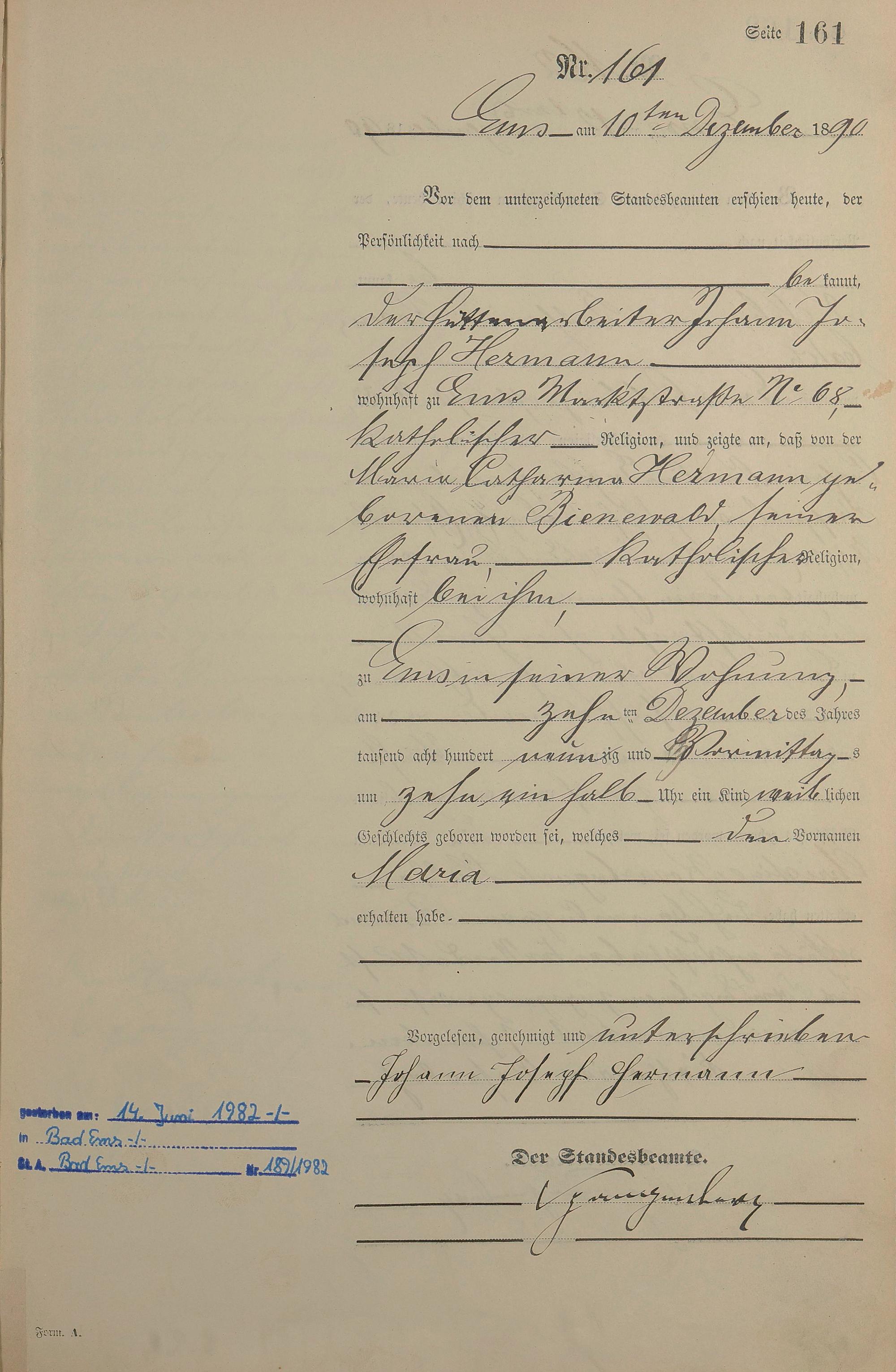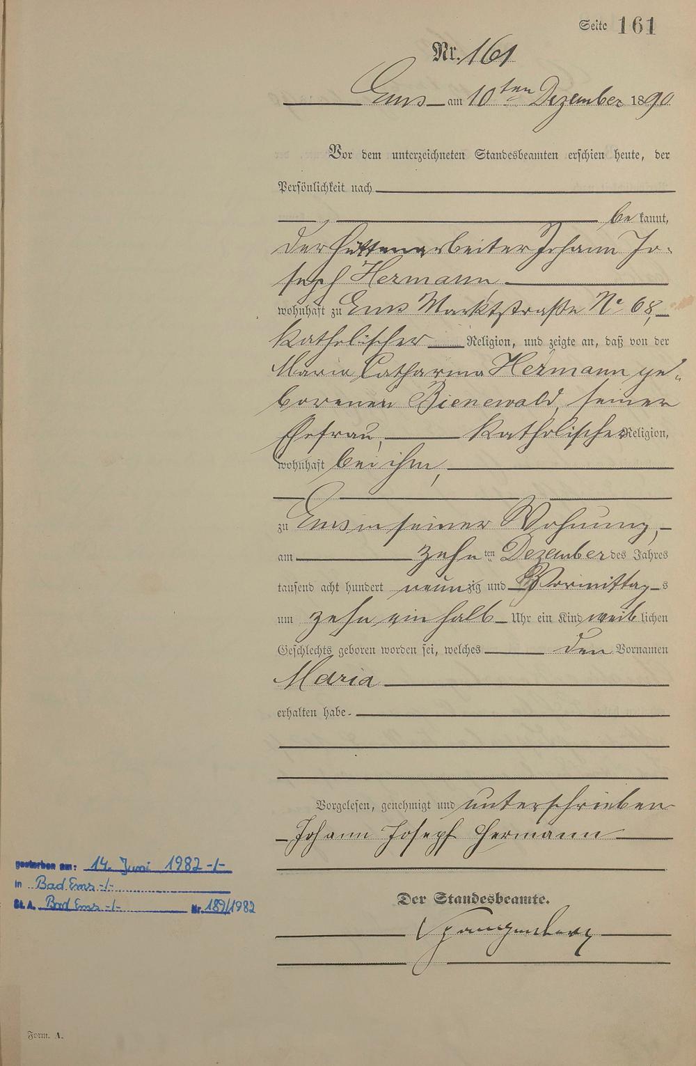 Geburtsregister 1890