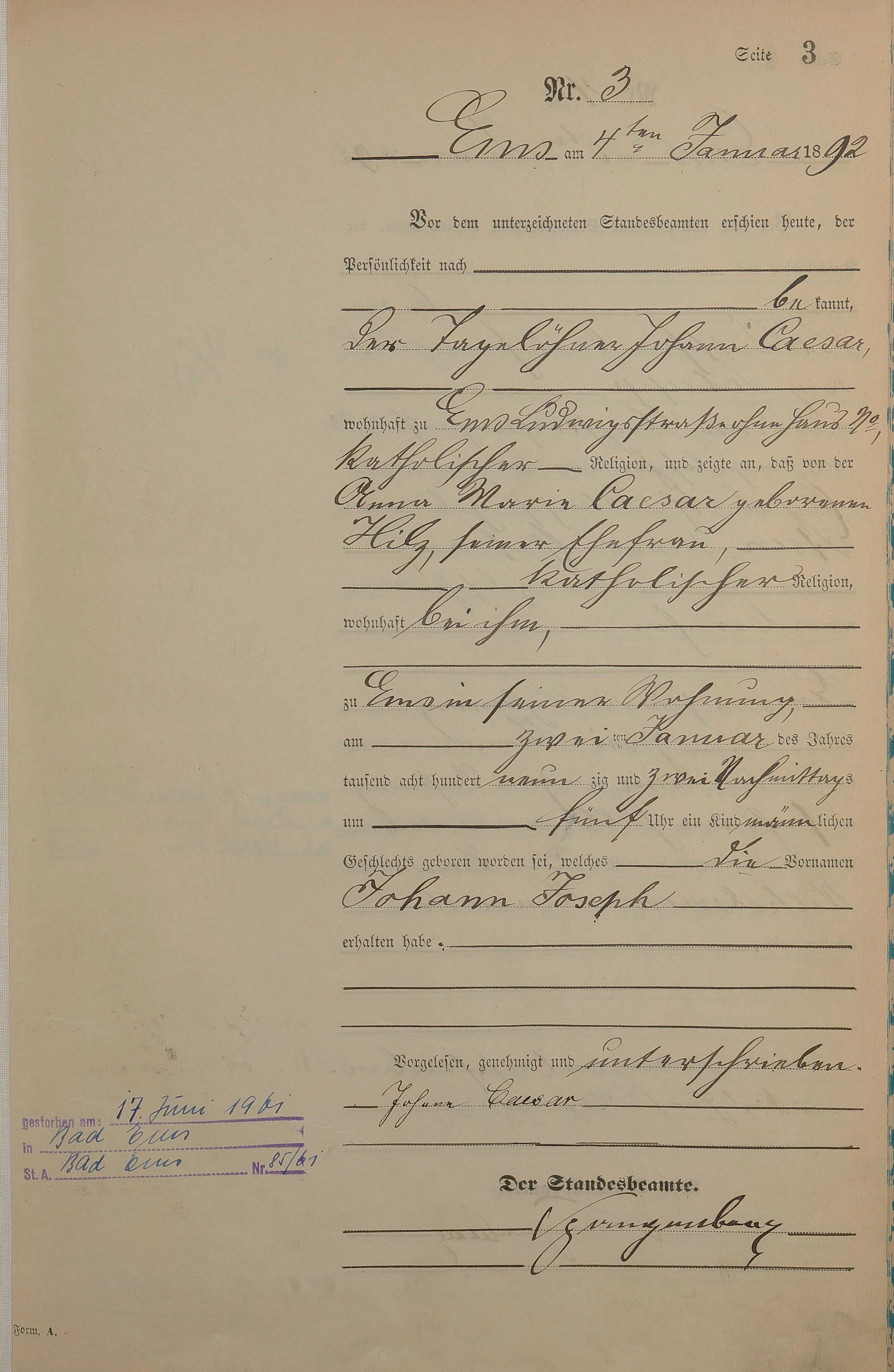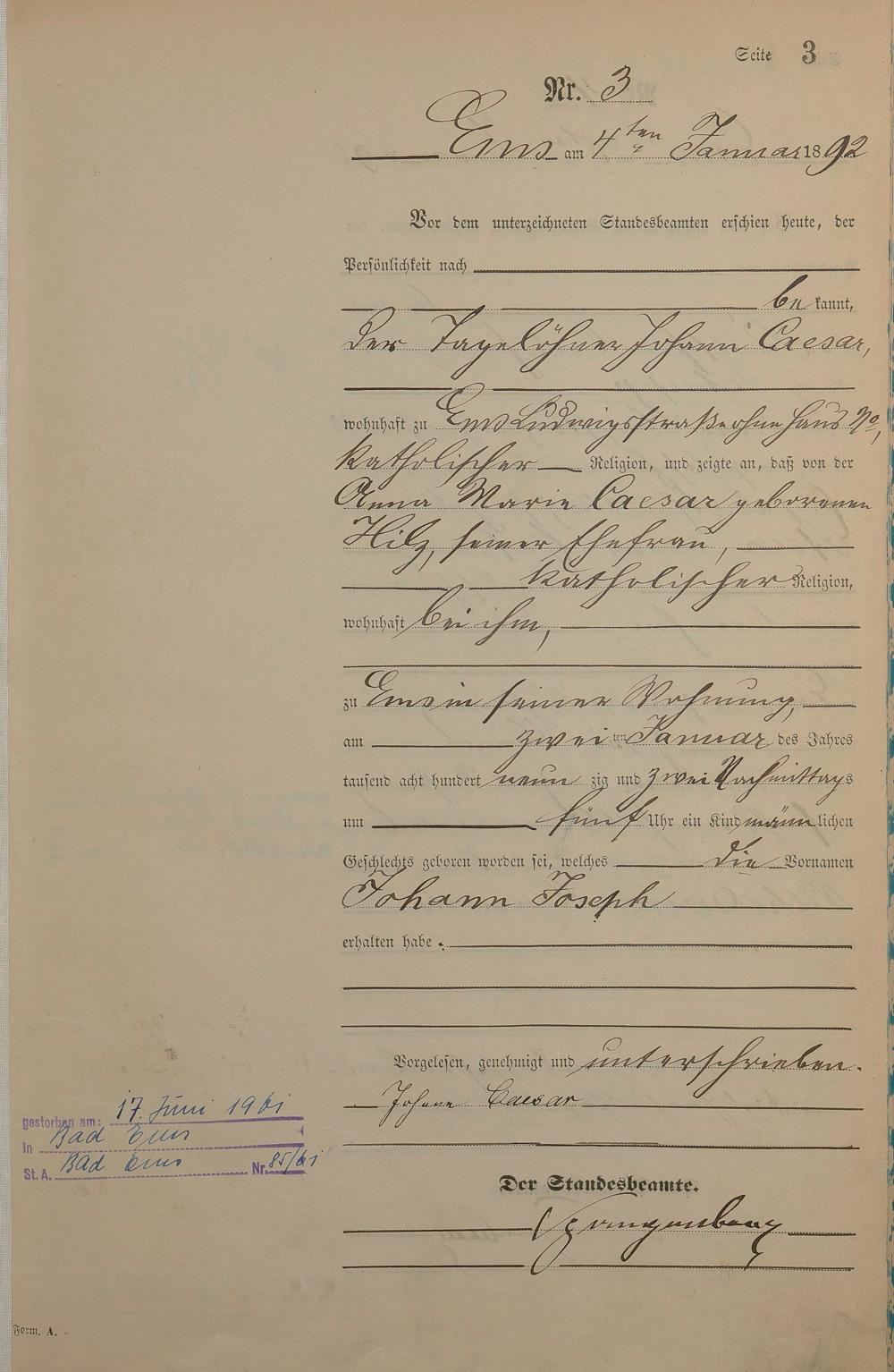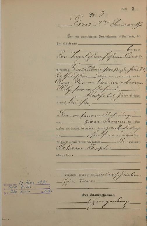Geburtsregister 1892