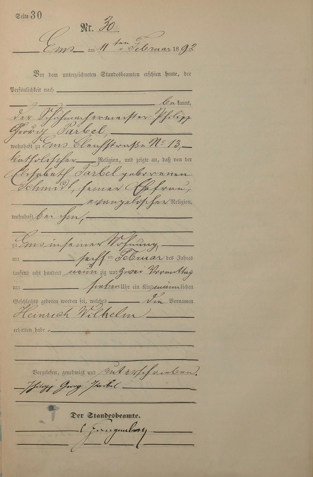 Geburtsregister 1892