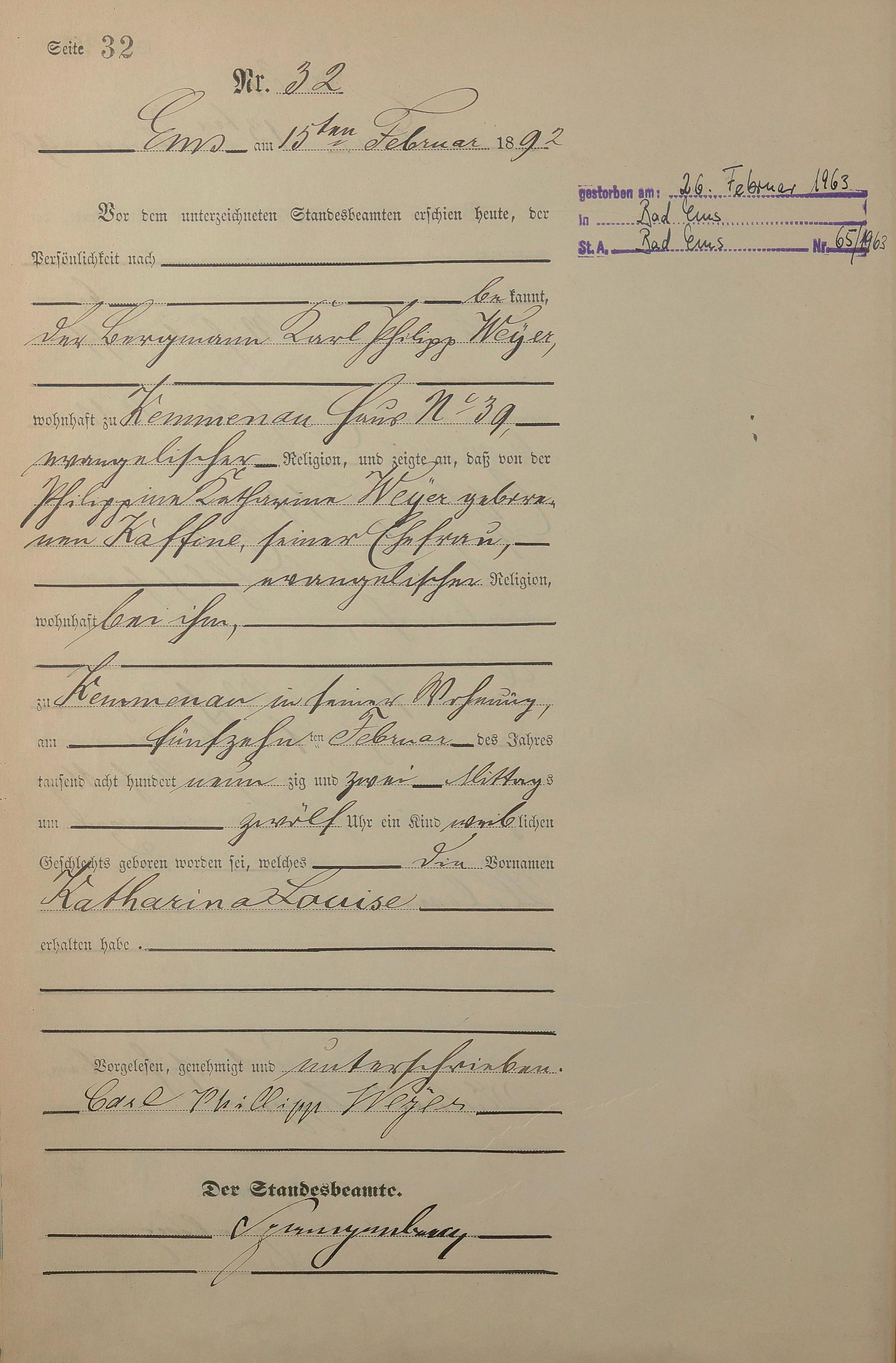 1268: Geburtsregister 1892