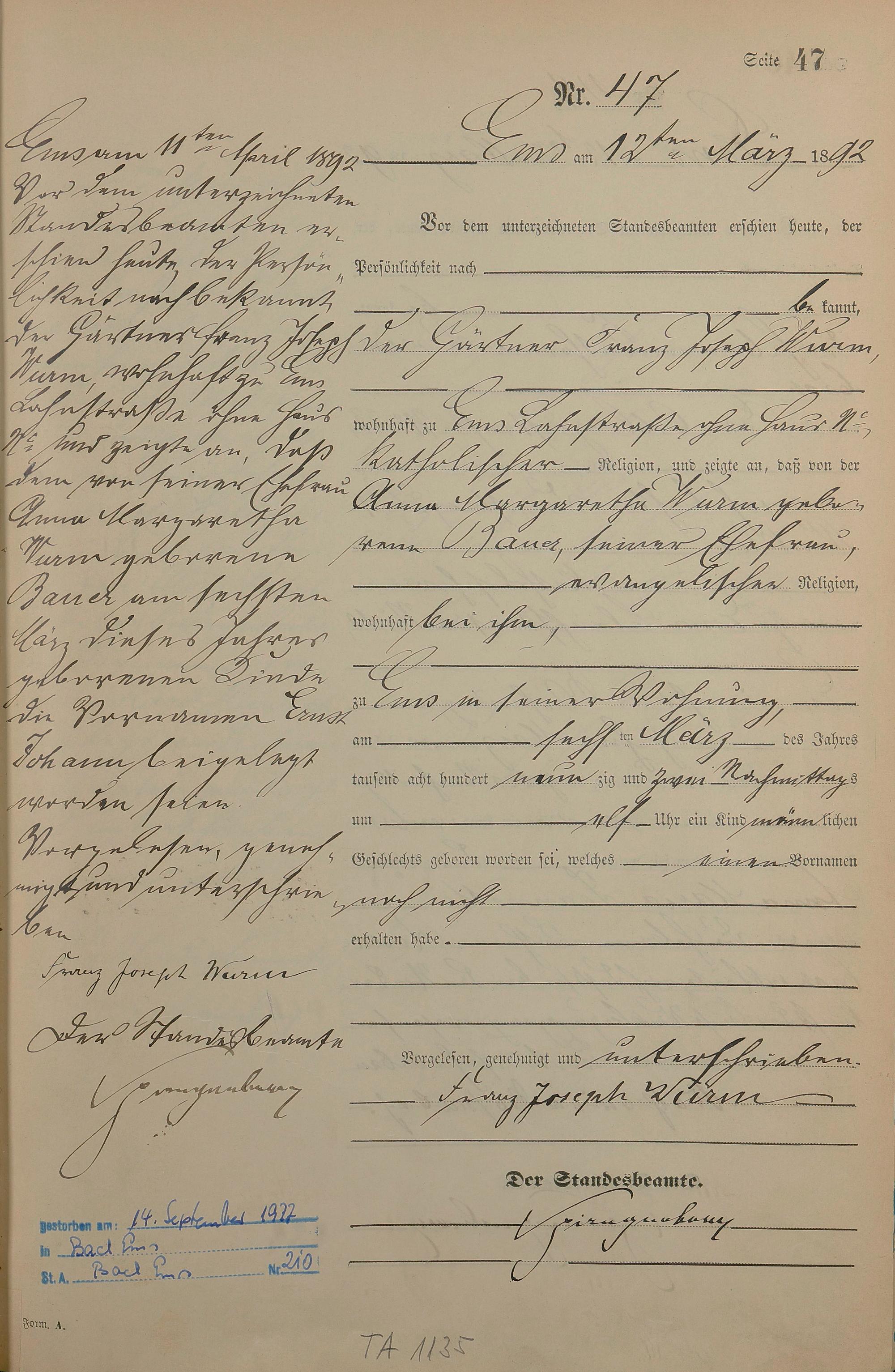 1268: Geburtsregister 1892
